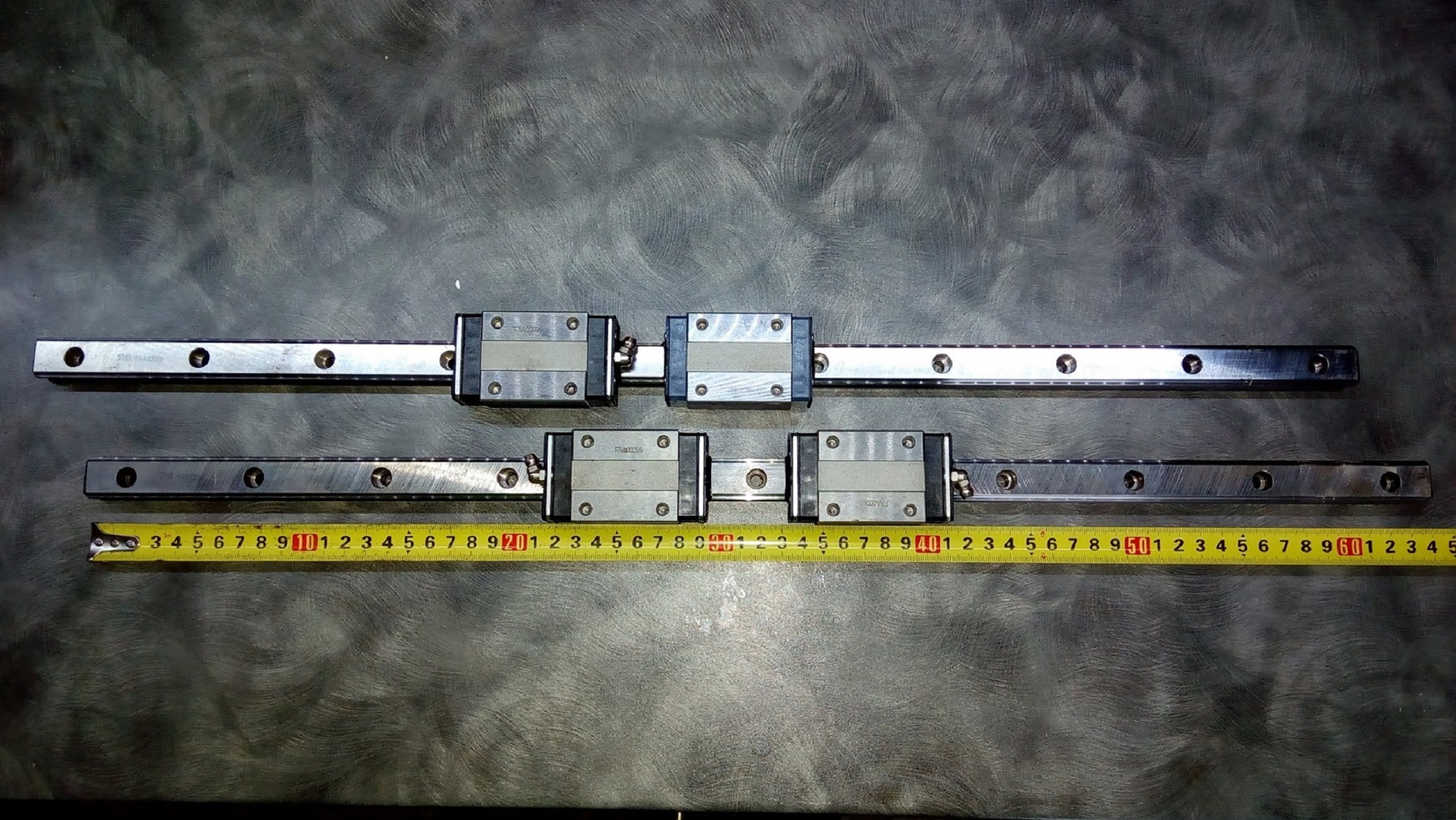 Dobrý den prodám 2 Ks kompletních vedení i s 4ks vozíků THK HSR20 dékla kolejnic 640mm.