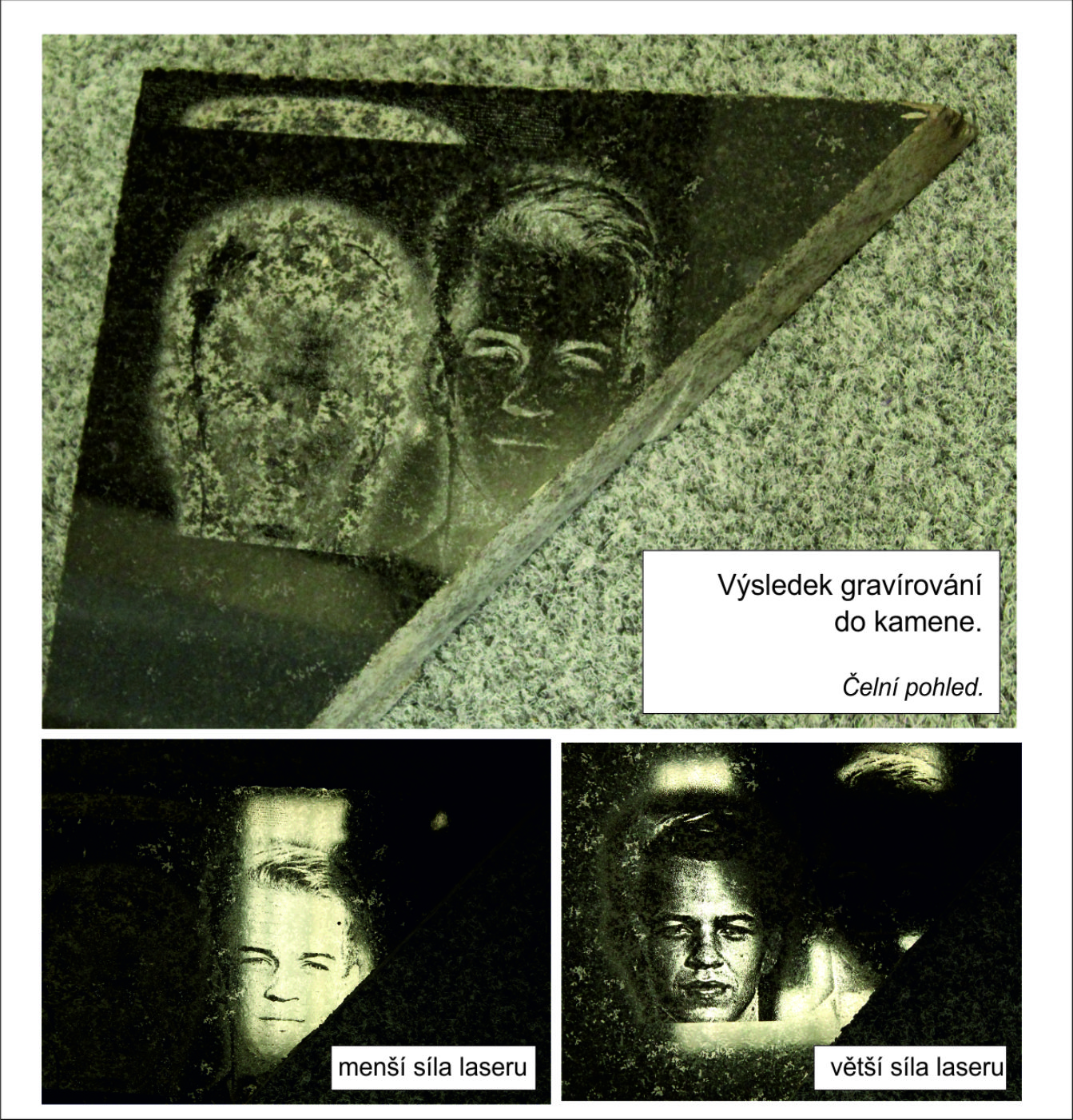 Nevím jestli je chyba při úpravě grafiky nebo v nastavení laseru. Vyleze mi z toho vždy jeden velkej vyškrábanej flek, ale při pohledu z určitého úhlu a nasvícení vypadá portrét realisticky, tak jak má.