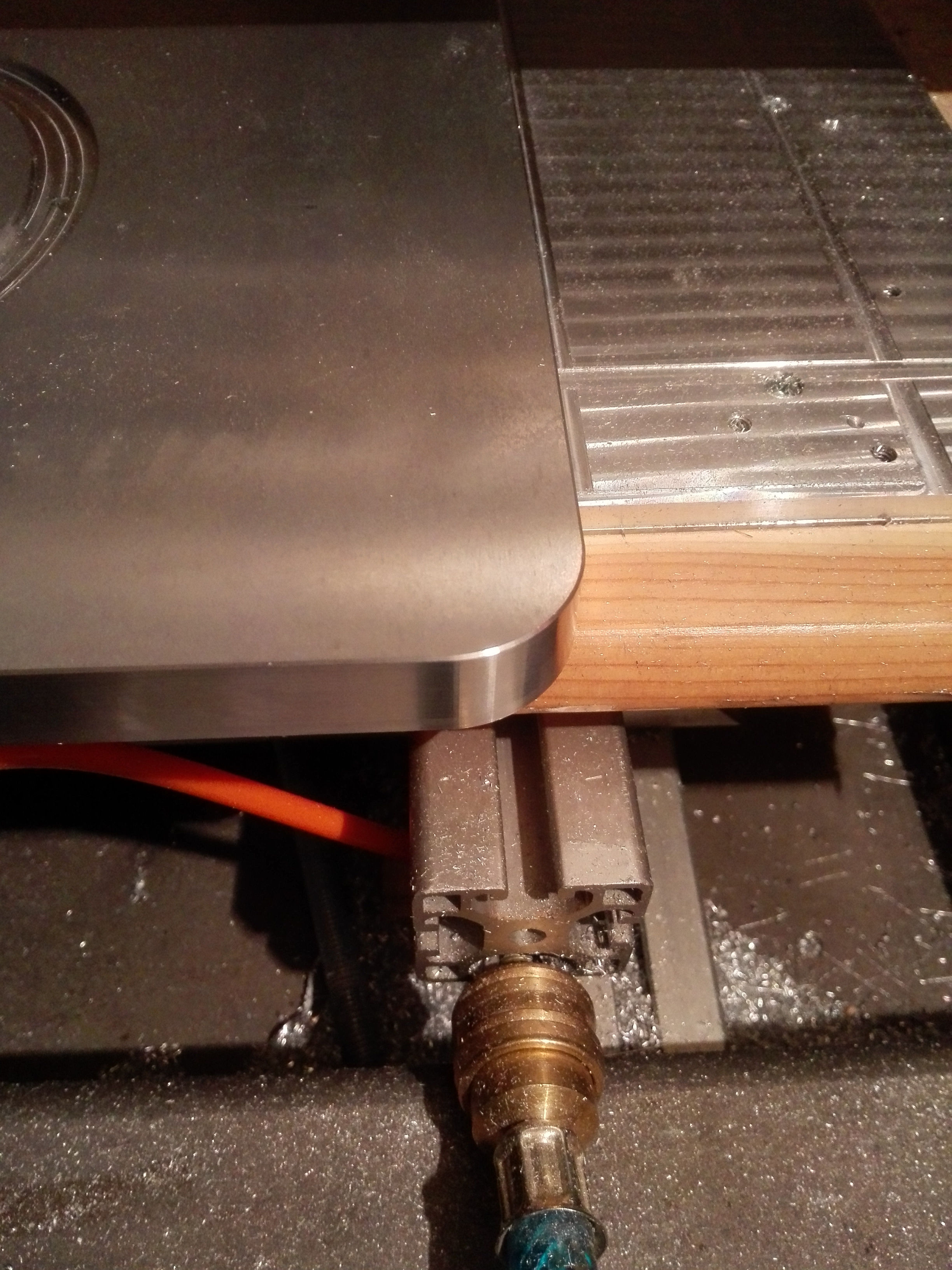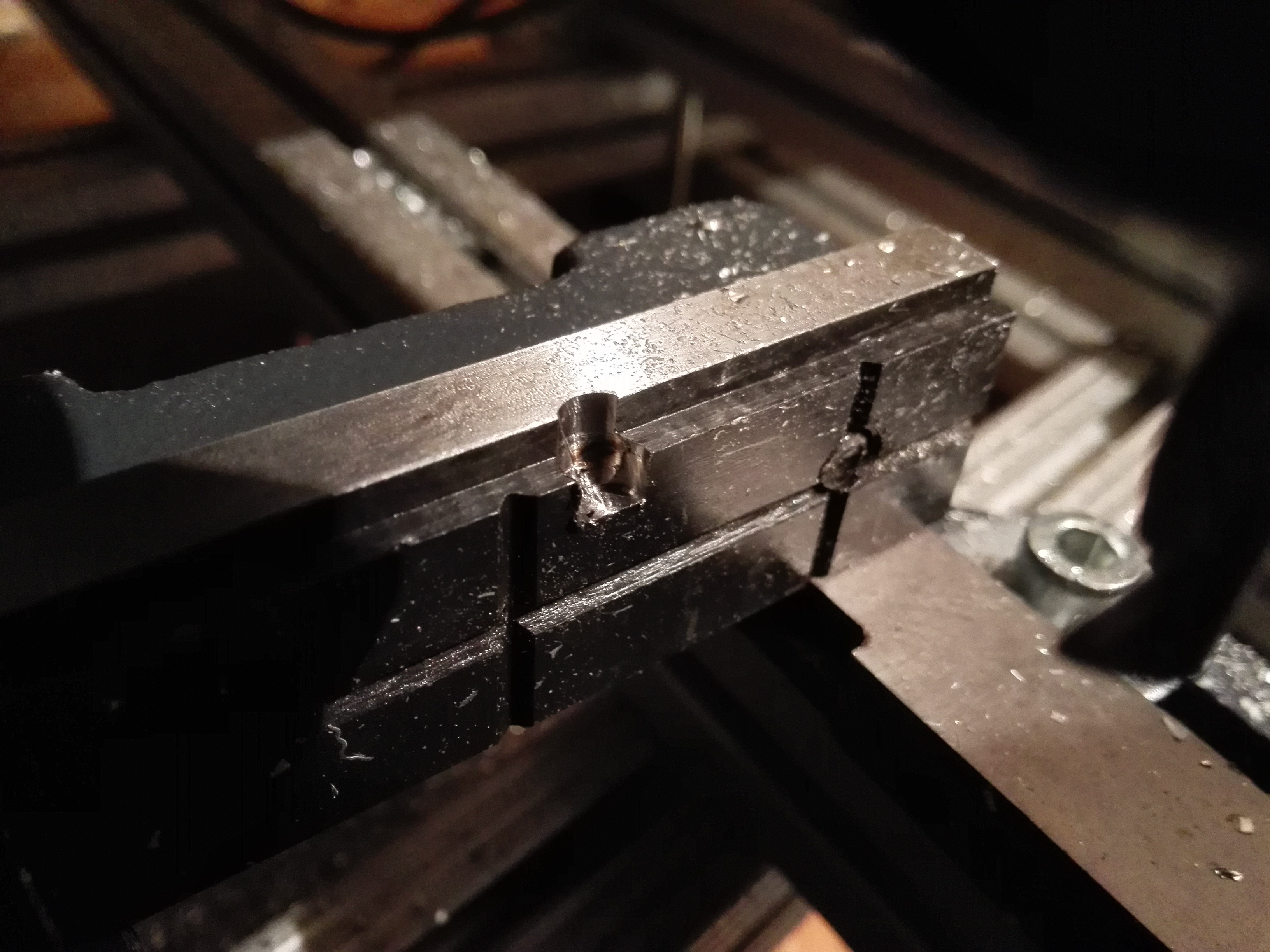 A podarilo sa "obrobiť" aj niečo tvrdšie ako dural : 4m/m posuv, 5mm hĺbka záberu, nástroj: jednobrit fi6 Datron a nervy v čudu :D