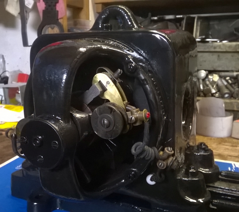 Dával jsem dohromady elektrickou část. Obě statorové cívky jsou nově navinuté. Kartáče a mosazné držáky kartáčů jsou také nové. Ty mosazné držáky jsou pálené laserem v Plehasu.