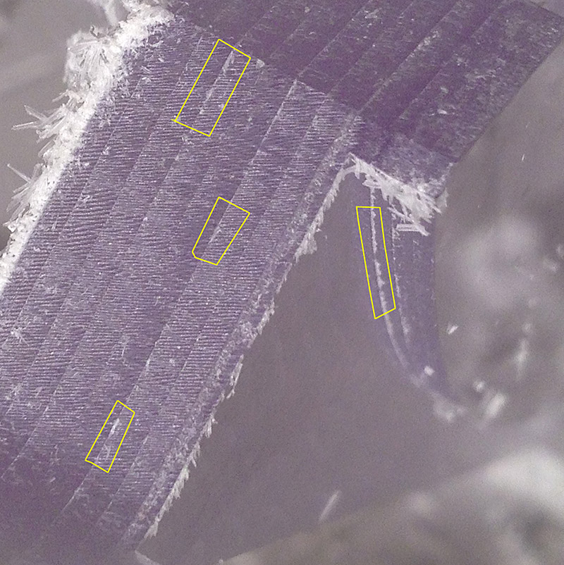 šupiny na hraně po odfrézování
