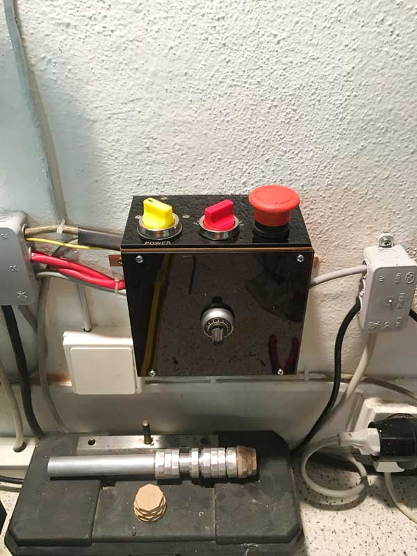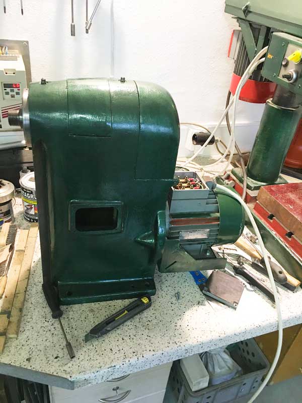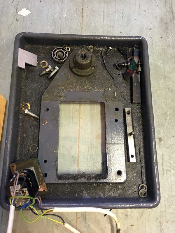 Teď to bude horší. Samotná vana je litinový odlitek, tak 40 kilo. Tady kromě čištění nebude žádná úprava, přepínač směru otáčení samozřejmě zachovám původní, ale bude přepínat směr na frekvenčáku.