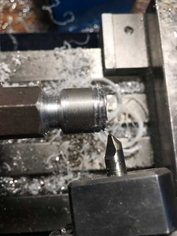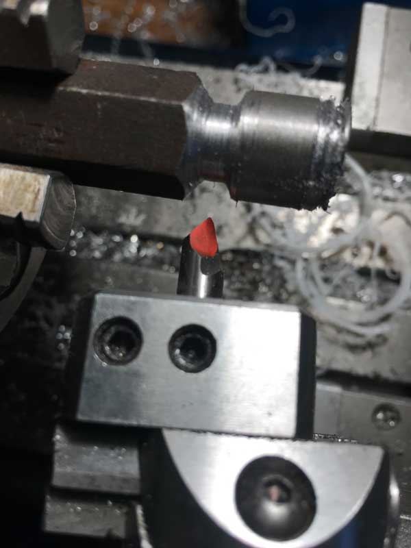 Nožík musí mať správny tvar, keď prípravok vyberieš zo sústruhu a dáš si ho hlavou nahor, tak nožík musí vyzerať ako normálny sústružnícky nôž.