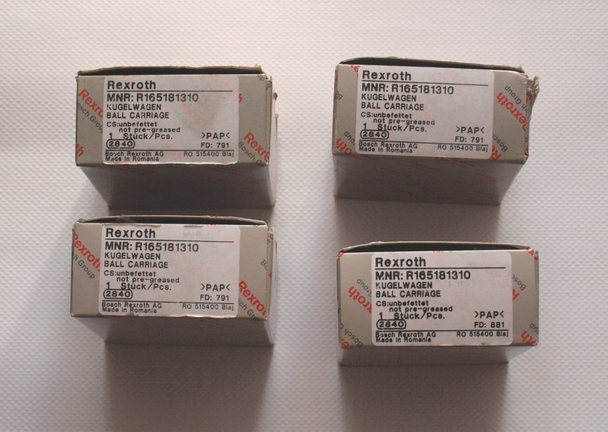 Prodám sadu lineárního vedení Rexroth - dvě kolejnice a čtyři vozíky. Vozíky jsou lehce předepnuté. Kolejnice mají krycí lišty, takže není nutno použít zaslepky na instalační díry. Délka kolejnic je 143cm, vedení je nové, nepoužité. Rozměry viz. datasheety. Cena za sadu 9000Kč. Možný osobní odběr v Praze nebo zašlu poštou. V případě zájmu zašlete SZ. Děkuji.