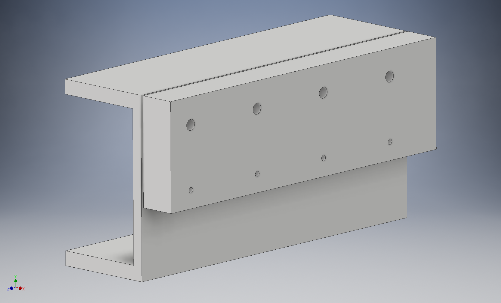 Máš na mysli takhle? Velké díry pro šrouby, které přes lepidlo drží tyč u profilu, a malé pro červíky, kterýma ustavím sklon tyče od stěny profilu tak, abych dosáhl vzájemné roviny obou stran uložení na horní ploše té tyče?