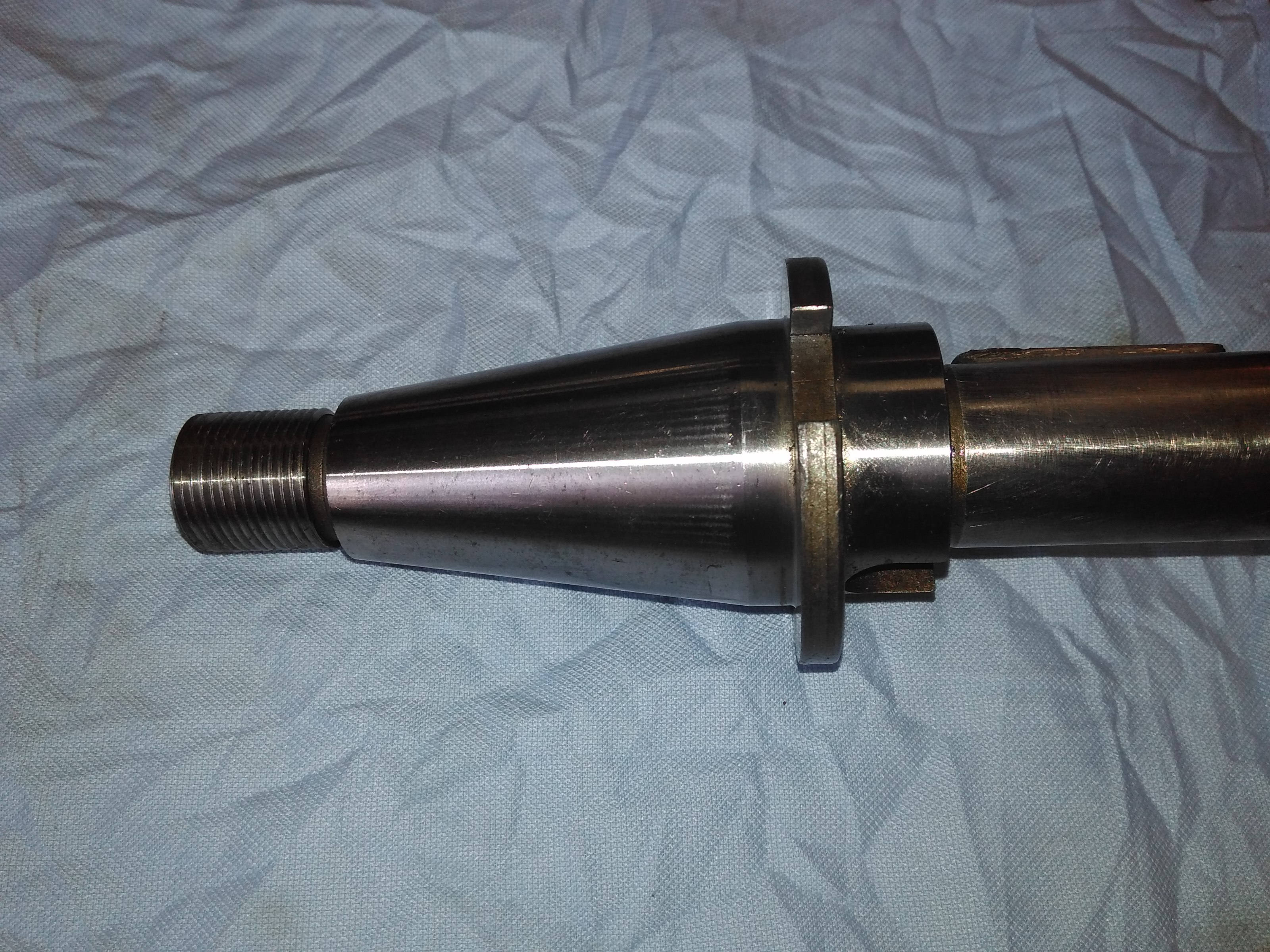 Tenhle kuzel se pouziva na frezkach Deckel. Jedna se o ISO40 s S20x2 vnejsim zavitem (vnitrni v krcku nebyva). Ten zavit ma nerovnoramenny trojuhelnik jak je videt na obrazku redukce (prava strana) pro standardni kuzel.