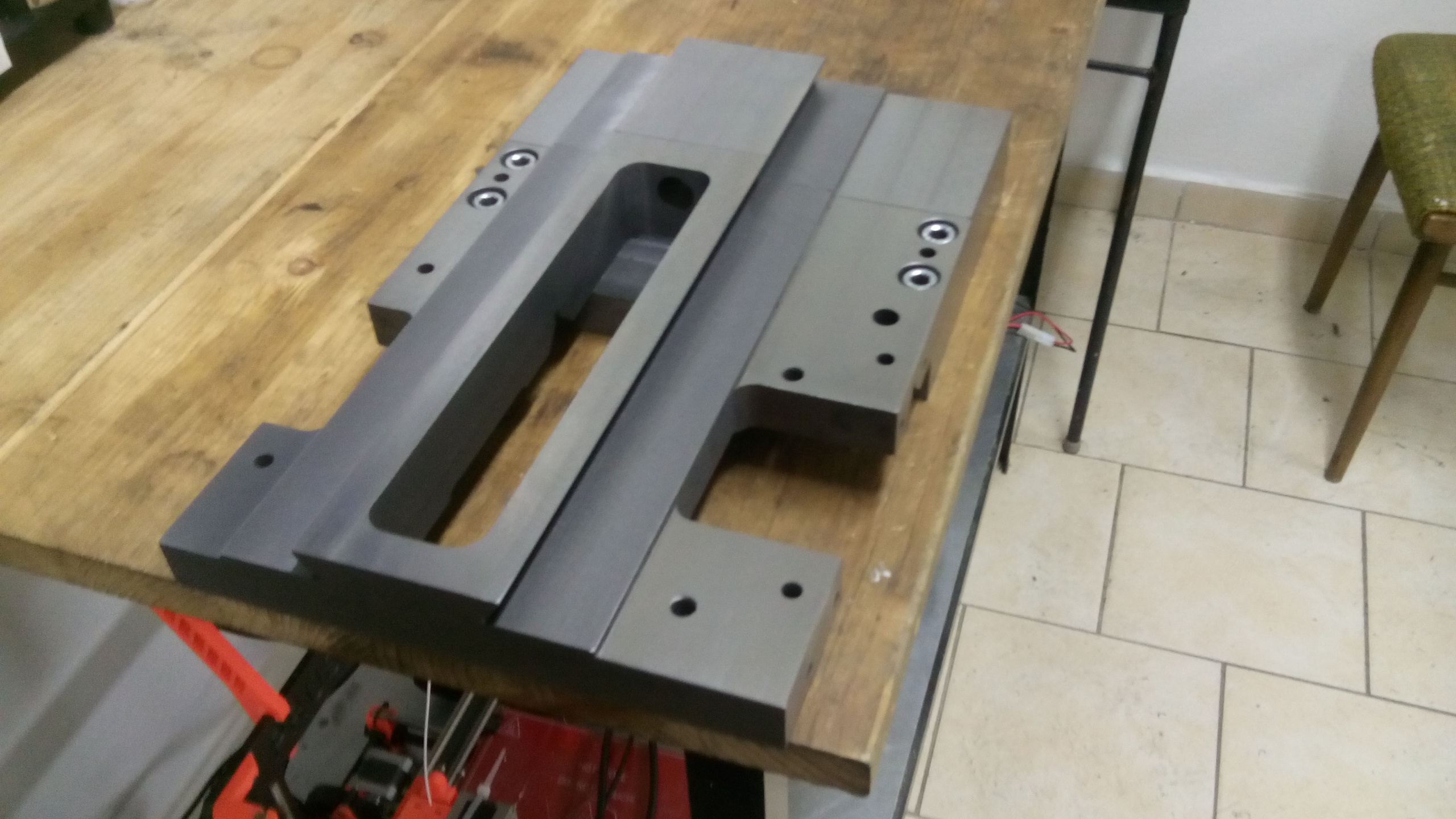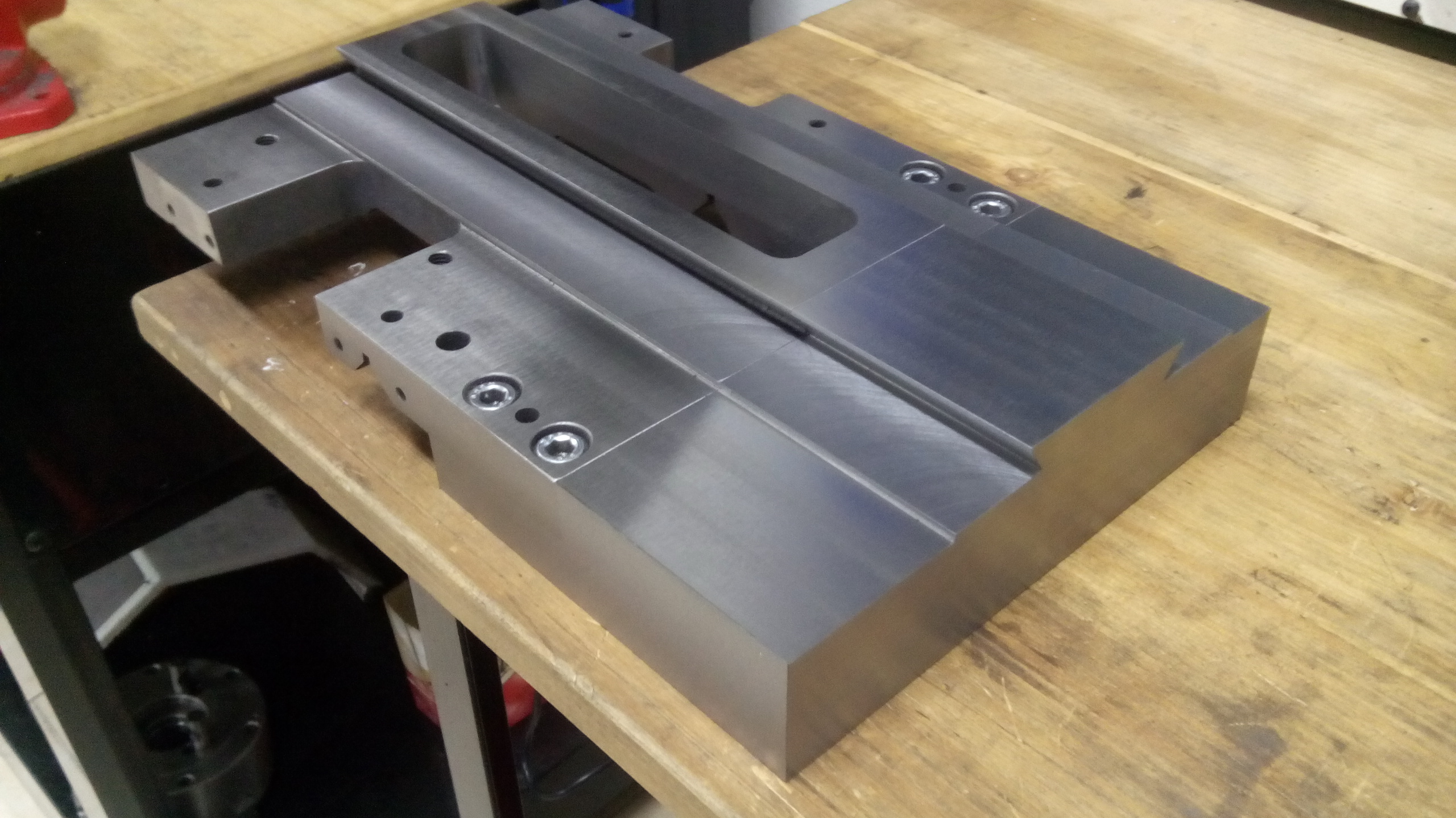 Nerad obrábím litinu, strašně zasrané stroje a kombinaci litina a 11523 mám vyzkoušenou a zatím žádný problém, jedná se o první kus na prototypový soustruh, u sériové verze počítám se supportem z jednoho kusu ( Bude ocelové 12050, kalené a broušené ).