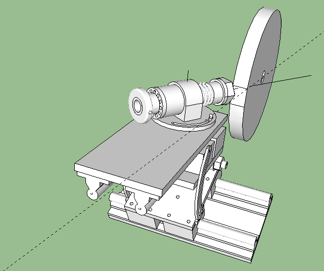 Co se týče změny uhlu naklápěním včetně osy X tak, to jsem měl původně, ale když jsem to nakreslil tak mi přišlo že vrták je už hodně vzdálený od pohyblivé osy náklonu a tak i při malé změně úhlu broušení se vrták strašně moc oddaloval, nebo přibližoval k brusnému kotouči. Což by mohl být problém právě u toho podbrusu kde se poměrně významně mění uhel broušení.