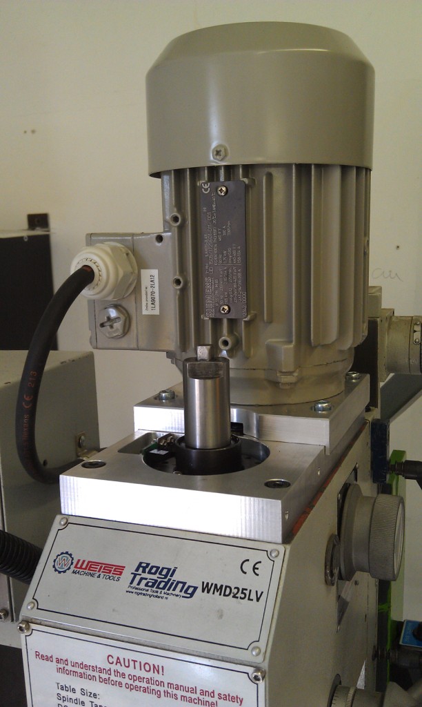 Originál motor mi vyhazoval proudovej chránič, na radu Robokopa jsem se díval na uhlíky, jeden byl unavenej a druhej skoro mrtvej. Výměna to zlepšila, ale neodstranila úplně. Tak jsem to vyřešil takhle. Řízení měničem, vektorové řízení, při 4 Hz to má cca 80 otáček, při 100 Hz 4000. Šel by víc, ale kdo má poslouchat to ječení. Celkově je to klidnější, chybí tam ozubený kola motor-převodovka. Dal jsem tam ozubenej řemen a dvě řemenice tak, abych nemusel měnit rozteč. Ty 4 Hz dokážu rukou zpomalit, ale ne zastavit. Na závity to snad bude dobrý. Originál motor jsem zastavit nezkoušel, takže nemám srovnání. Ale řezal jsem s ním závity do M8 do všeho a M10 do Al a měkké oceli. M12 do oceli už to nedalo. Při příležitosti redukce vnitřního osazení/zapojení jsem zjistil, že jeden zaletovanej faston na přívodu napájení je jen zastrčenej. Možná to byl pravej důvod vypadávání proudové ochrany. Jestli tam lítaly proudový špičky...