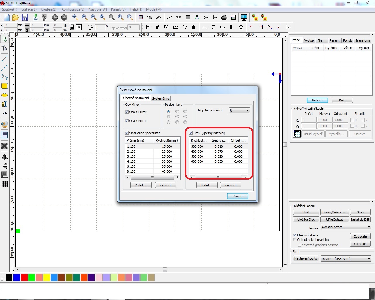 Tady jsou hesla: skleněná trubka - CC8888, kovová trubka - HF8888 a nastavení parametrů - RD8888. Po správném nastavení a přehození drátu řízení už není laser "all user frendly", ale začne dělat to co sami chcete. Když potom v nastavení vypnete všechny SW pomocníky, dostanete výslednou kvalitu na úroveň 5 let starého 40W laseru s ŘS Leetro. Tím nechci říci, že Ruida je špatná. Prostě je nastavená tak, aby každej trouba bez jakýchkoliv znalostí začal řezat, nebo gravírovat. Nemít před tím jiný laser, taky by mě nenapadlo, že to půjde lépe. Tenhle článek berte prosím s rezervou, protože opravdu neumím anglicky a tak vše, co tady prezentuju jsou i částečně dohady, vyplývající z desítek testů, které jsem na mašině dělal. Pokud by byl zájem, dám sem i případně fotky různých testů. Na druhou stranu, pokud má někdo další zkušenosti, sem s nimi