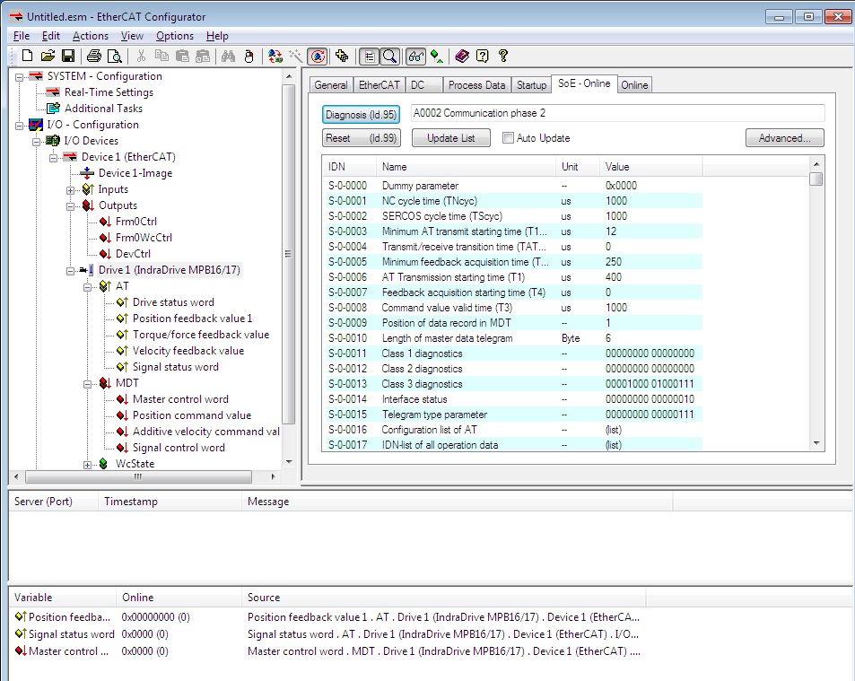 Rexroth například nepodporuje CoE (CANopen over Ethercat) který je hodně používaný pro vyčtení nastavení parametrů z driveru ale místo toho pužívá SoE (sercos oever EtherCAT) Z toho plynou různá omezení. K tomu se dostanem postupně.