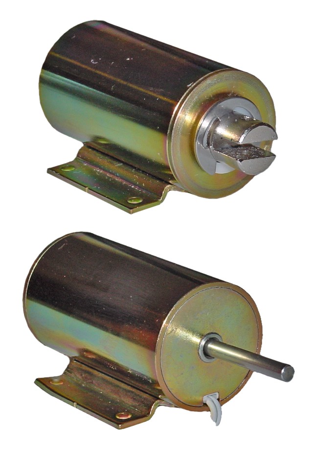 Druhé dva obrázky jsou asi ten samý (tažný s krátkým krokem) solenoid, první jako zámek krytu, druhý něco vystavoval přes pákový převod. (mám po 1 ks)