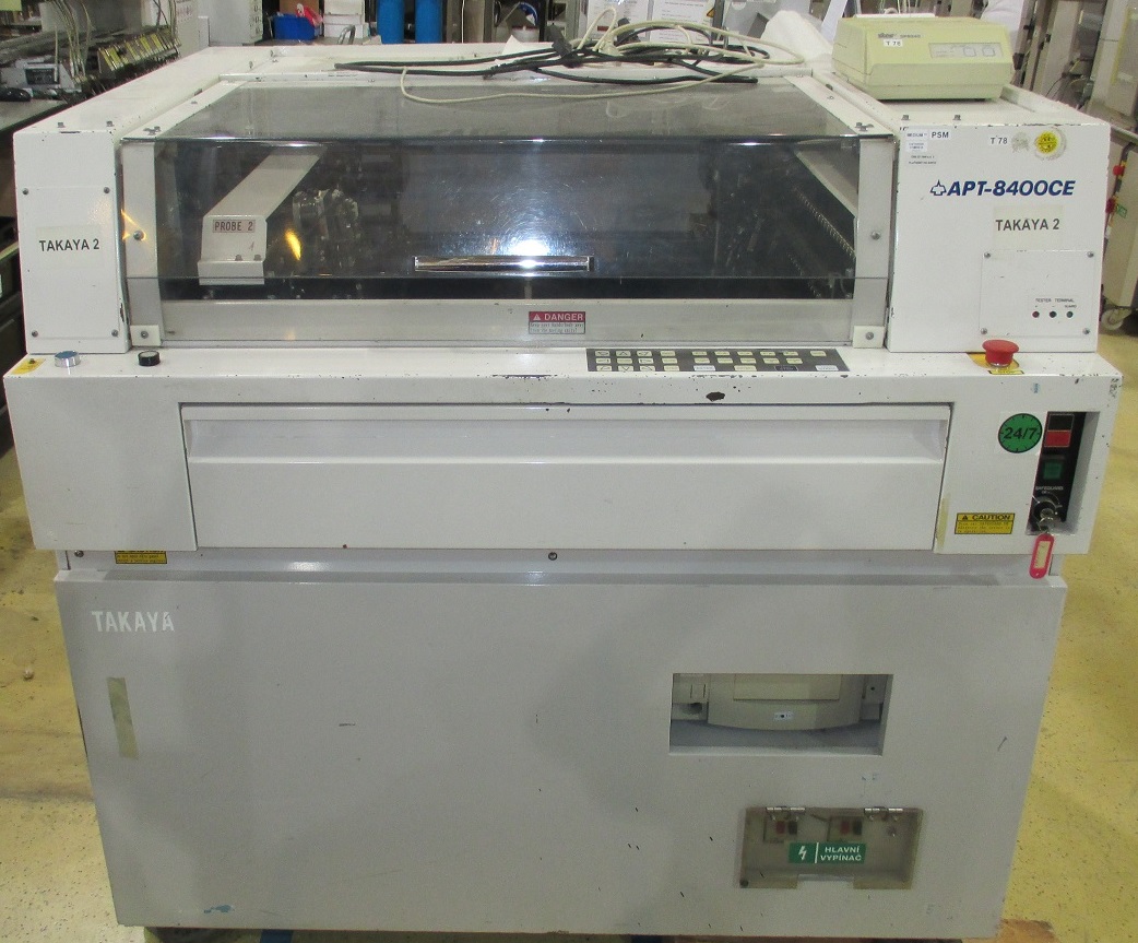 Stroj sloužil na testování elektronických desek, měření kondenzátorů,rezistorů,cívek, polovodičových přechodů atd.Má zaměřovací ČB kameru.Součástí není monitor VGA a monitor s composite video vstupem.Není však problém ho nahradit.