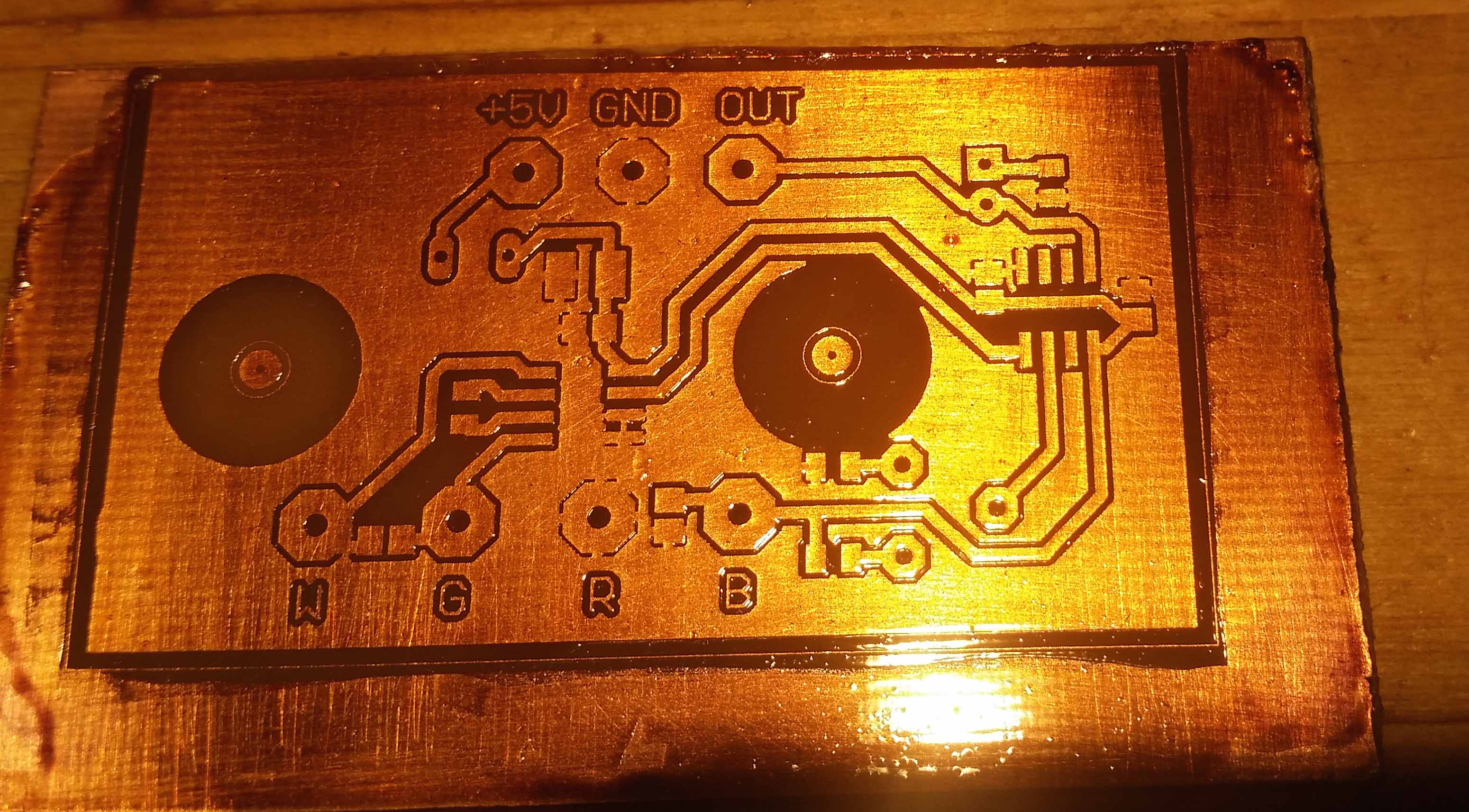 Posledních pár desítek let dělám PCB fotocestou. Předlohy tisknu na laserovce. Tady je ten problém. Nejdříve nebyly kvalitní fólie a pak v rámci ekologiských a šetřících opatření tiskárny. Stará "poctivá" LaseJet3 vytiskla opravdu černou předlohu, ale ještě pár deka toneru rozprášila do okolí. Jak šel čas, toneru při tisku ubývalo a předloha byla šedivá. Po čase jsem musel světlejší místa retušovat, pak už nešlo ani to. Pak přišel takový malý zázrak Centropen 2709 WBM. Fix na suché tabule. Tím se jednoduše přešmrdlaly všechny čáry, po uschnutí otřelo hadrem a hotovka. To otření hadrem se musí udělat fakt s citem, jinak si opět setřete i motiv. Při troše šikovnosti dobré. Pod lupou jsou sice vidět trochu potrhané hrany, ale stále je to lepší než gravírování. Teď jsem ale sehnal "zázračnou vodičku". Jmenuje se to BCL-2002 black covering a dováží to RAYFILM s.r.o. jako sprej. Vytisknu předlohu a fólii postříkám. Toner se asi naleptá a celá plocha je nádherně černá a ještě ho to má chránit před odloupnutím. Celá výroba PCB (bez vrtání) nepřesáhne 20 minut.