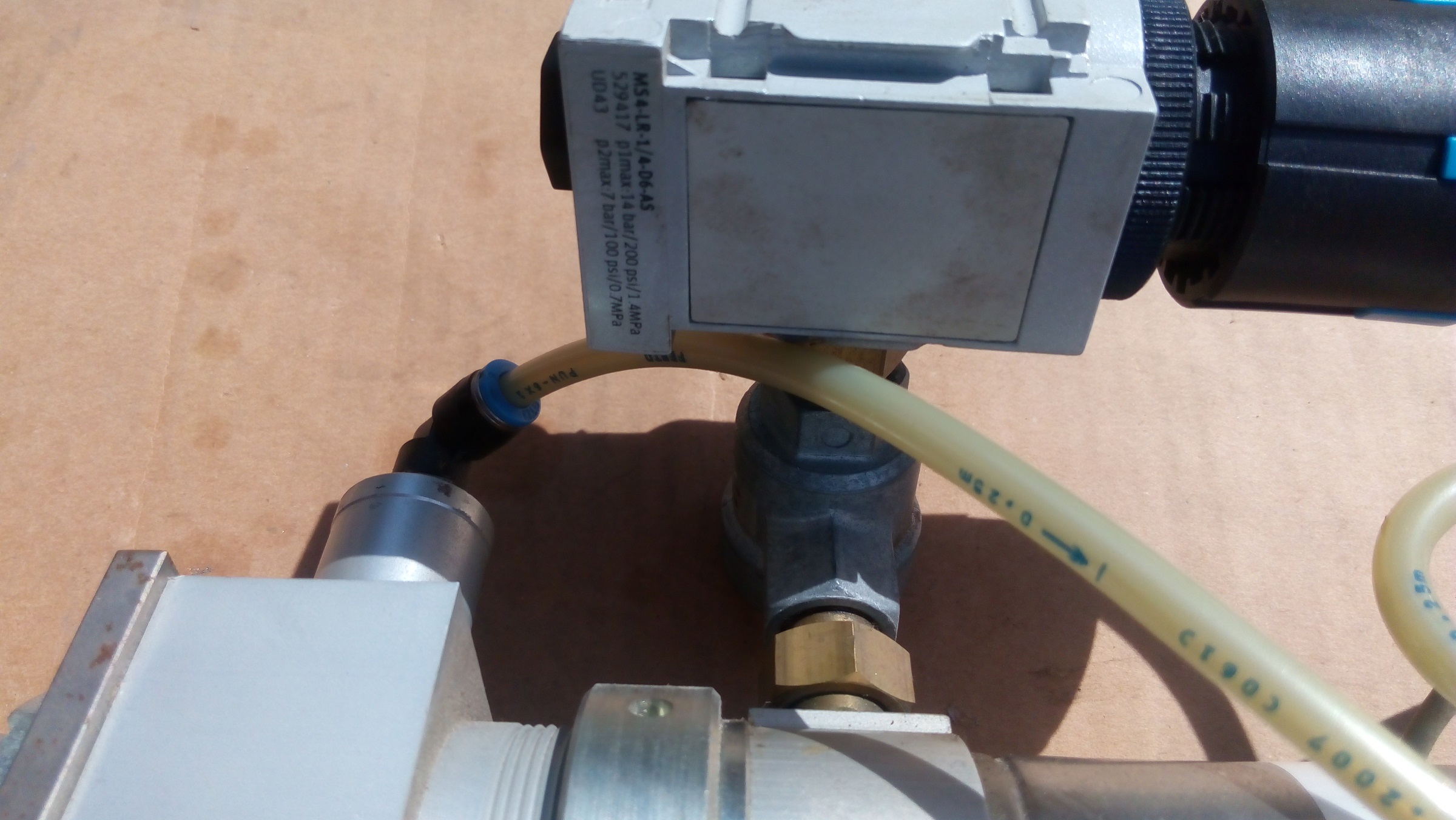 prodám 3ks této sestavy používáné původně jako protiváha - Píst s pneumatickou brzdou + EL. řízený ventil + regulátor tlaku atd... viz. přiložené foto.