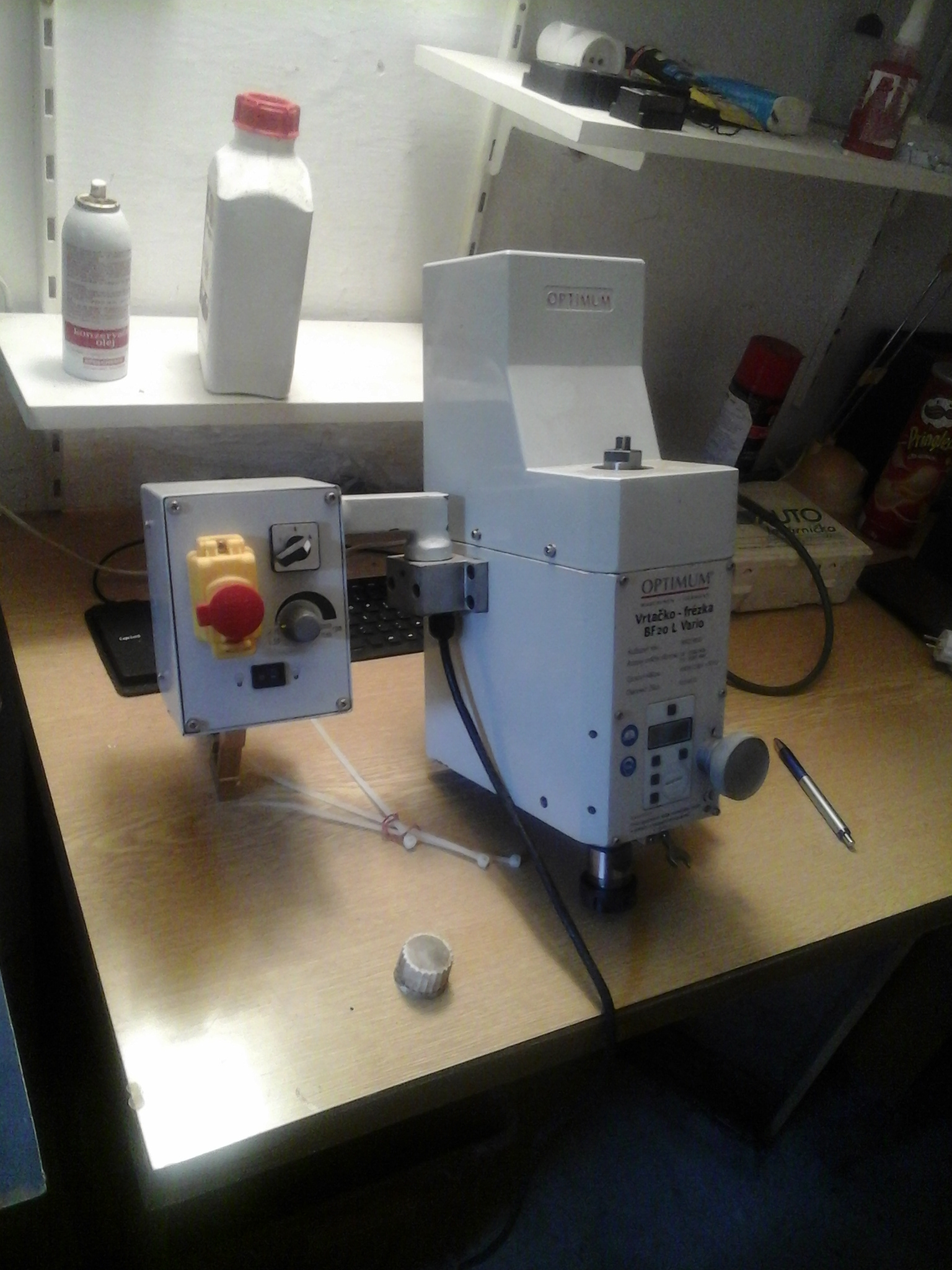 Predám vreteno stolnej frézky OptiMill BF 20L Vario, takmer nepoužité (doba chodu je doposiaľ cca 2 hod.). Vreteno je naklápacie (+ - 90stupňov), 220V, 850W, dvojstupňová prevodovka s kovovými prevodmi (Tumlík). Zdarma priložím klieštinový upínač ER 25/MK2/M10 s maticou.