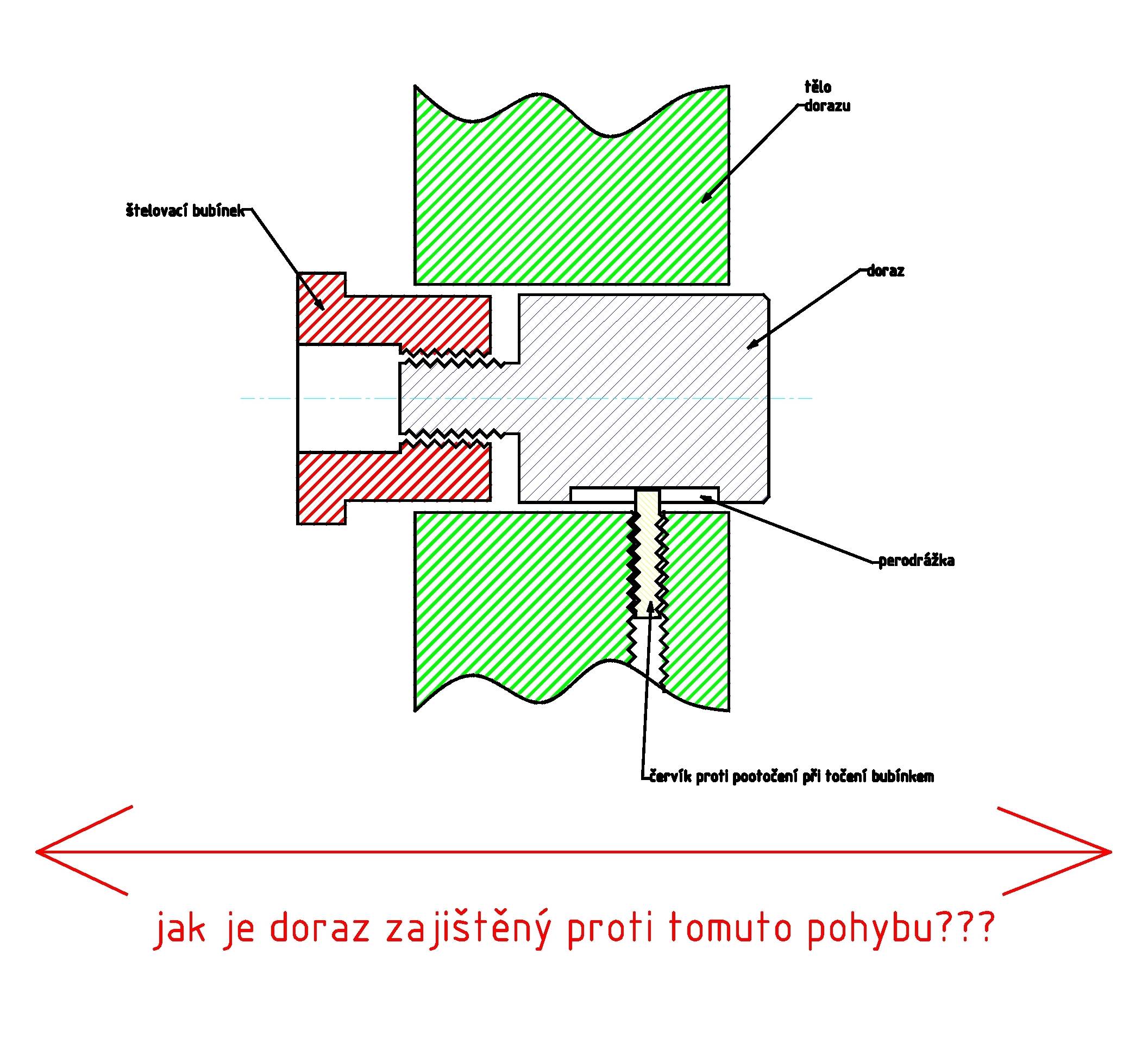 čeká mě výroba štelovacího dorazu a potřeboval bych nákres (ideálně v řezu, tvar lože mě nezajímá) jak je mikrometrický doraz řešený.