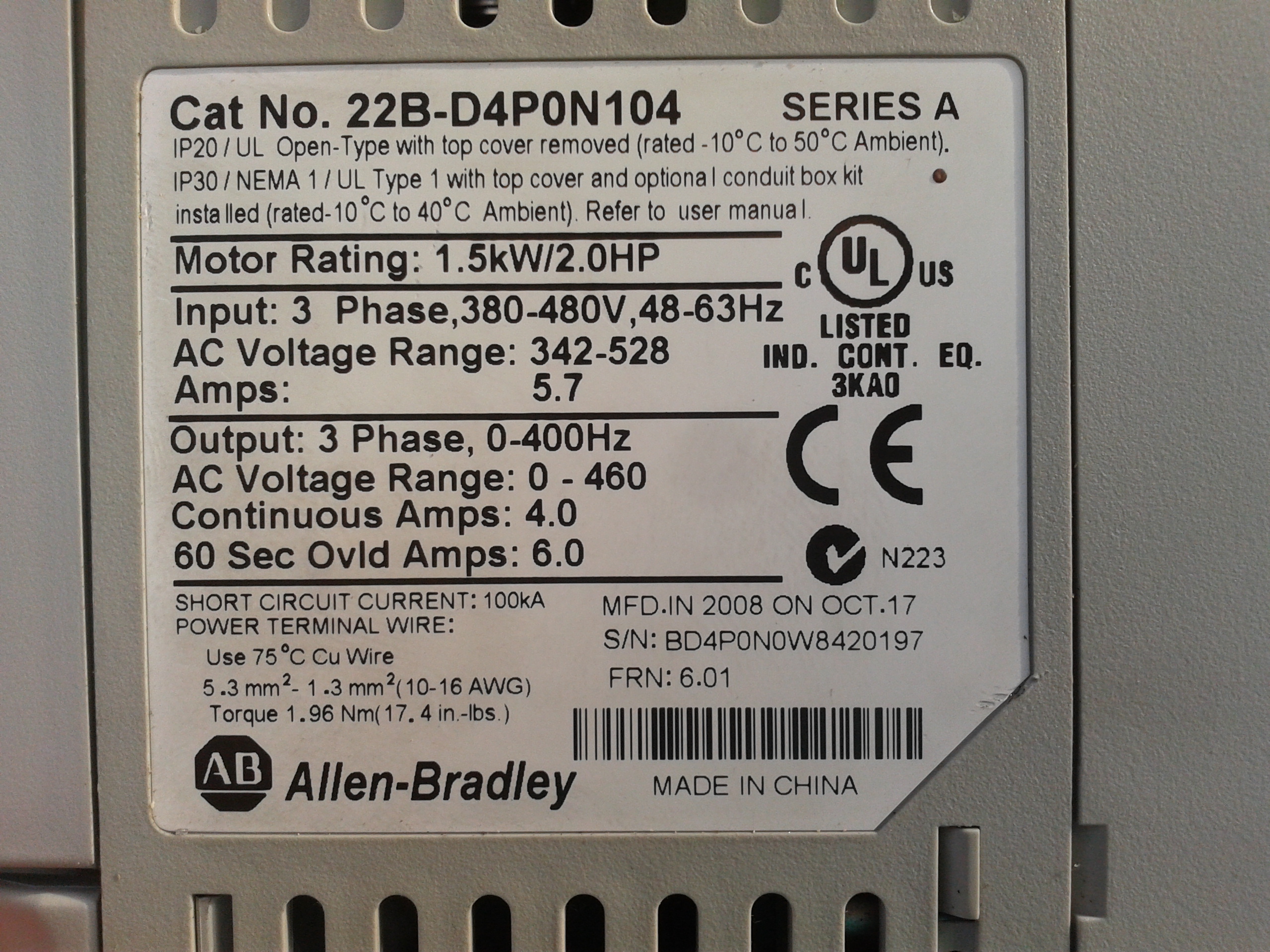 Predám použitý frekvenčný menič Allen - Bradley 1,5kW.