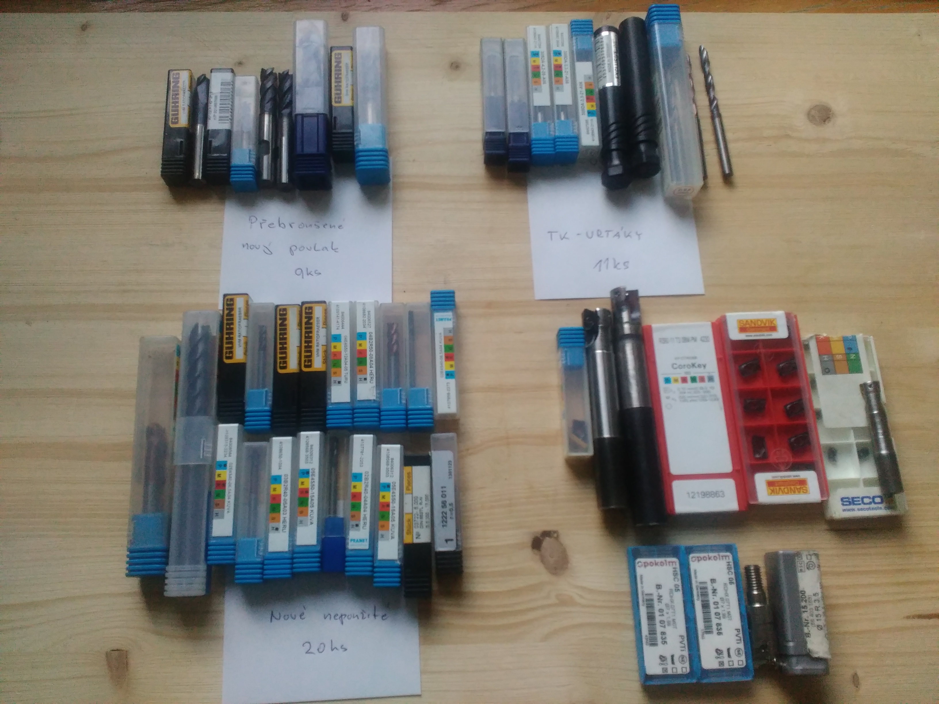 7.Nastroje TK Frézy nové, prebrousene nový povlak,minimálně použité stav 90-100%,2xdrzak Sandvik pr. 16 mm a dvě krabičky plátků ,držák Pokolm pr.15+ 16ks plátků,Seco pr.10mm.