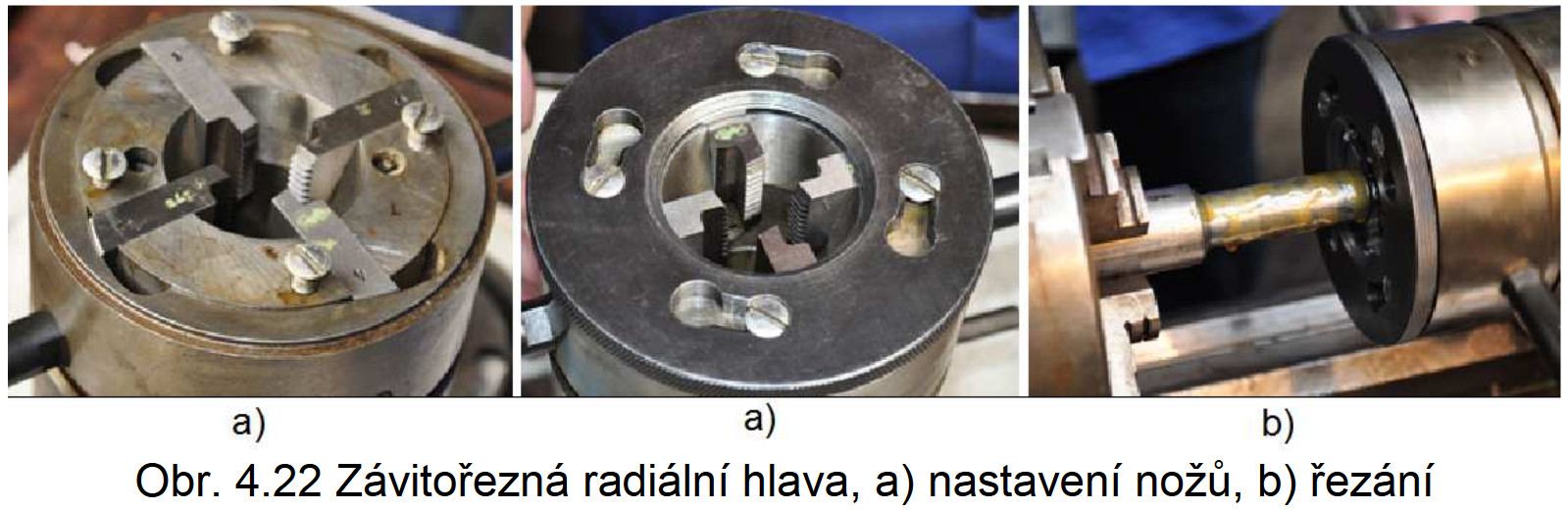 - Při seřizování je nutné nastavit čelisti pomocí stavěcích šroubů a natáčení objímky dle příslušného průměru závitu (šroub, kalibr). Nože závitových hlav jsou hřebínkové.