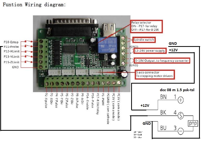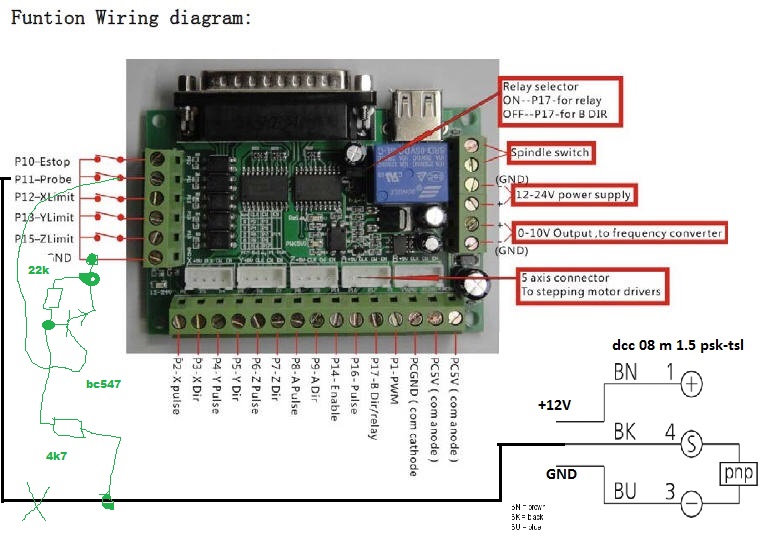 Ty pulzy gnd z čidla lezou do oddělovací desky a Machu je nastaven vstup pinu z čidla a v převodu 1:1,napájení čidla je podle návodu, 12v
