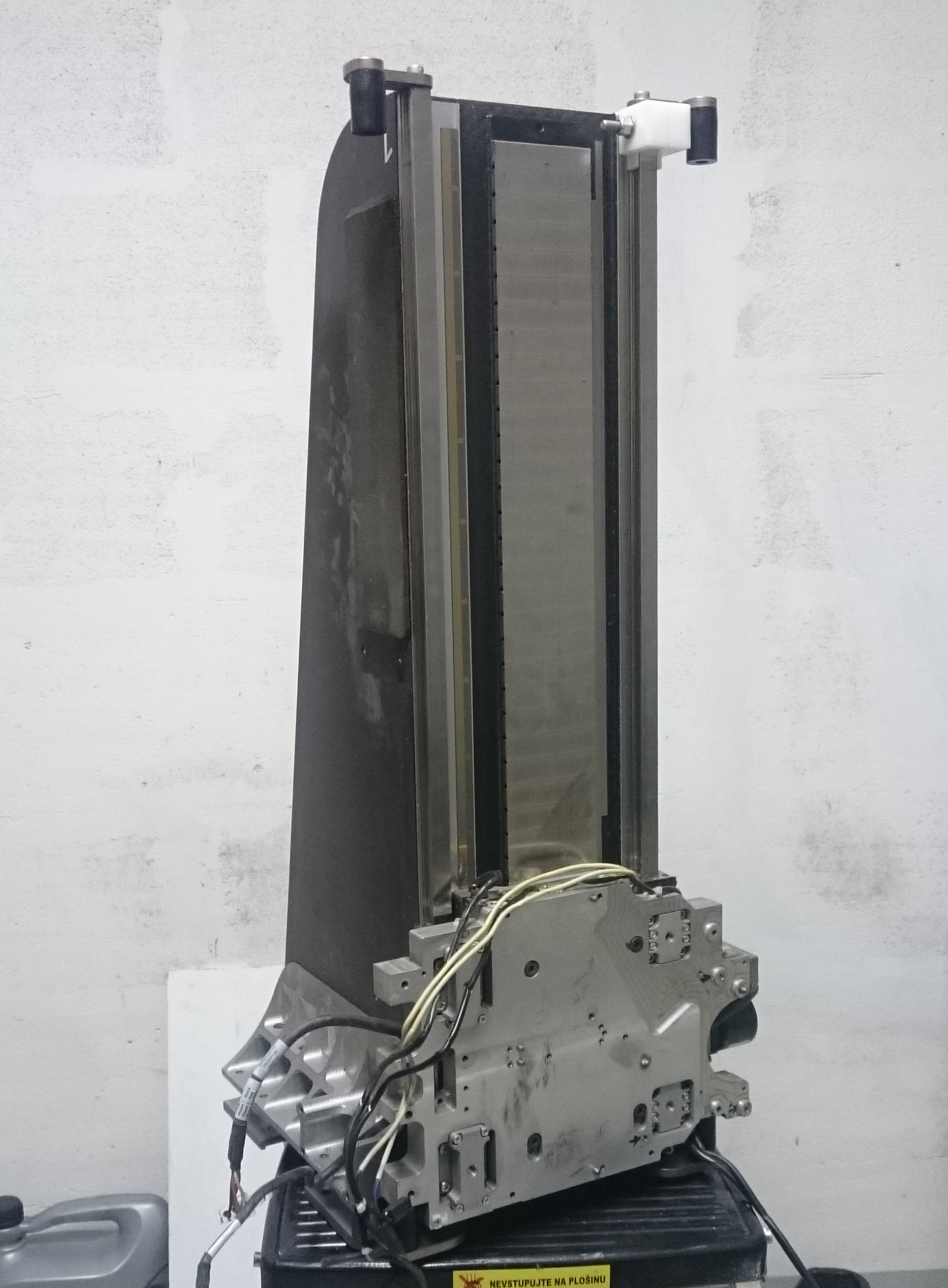 Lineáry vypadají dobře, byl to manipulátor v čistém prostředí. Asi 40 magnetů by mělo jít po ohřátí odlepit. Optické pravítko jde také odlepit, ale nenašel jsem k tomu žádné údaje (Siemens). Pokud by se k tomu dával kuličkový šroub tak asi na bok nebo pod lineáry a udělat novou desku. Ještě tam jsou dva pěkné indukční snímače průměr 4mm a kamera s osvětlením. Sloup je kombinace duralu a karbonového laminátu. Dalo by se z toho udělat celkem robustní Zetko