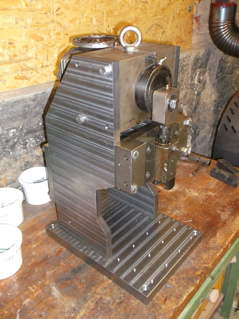 chcem si postaviť malý vystrihovací lis. Kúpil som prevodovku s excentrom a vedenie s baranom. Rám si spravím. Výsledok by mohol vyzerať takto: