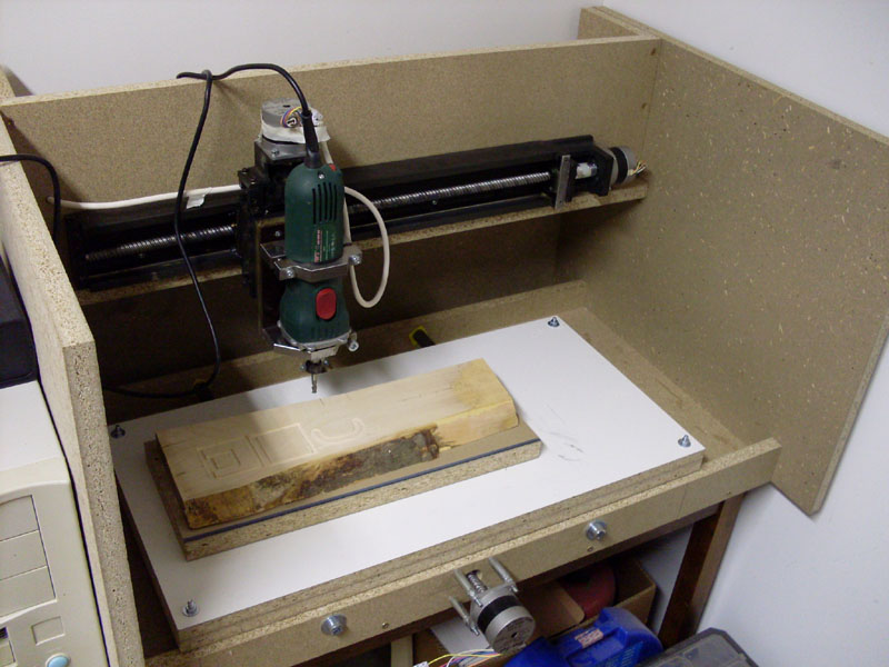 Protože nemám žádné strojní vybavení, tak jsem volil rám je sešroubovaný a slepený z dřevotřískových desek tloušťky 22mm. Vím že to není ideální řešení z hlediska tuhosti, ale na moje použítí to zatím stačí, možná později frézku předělám na ocelový rám..