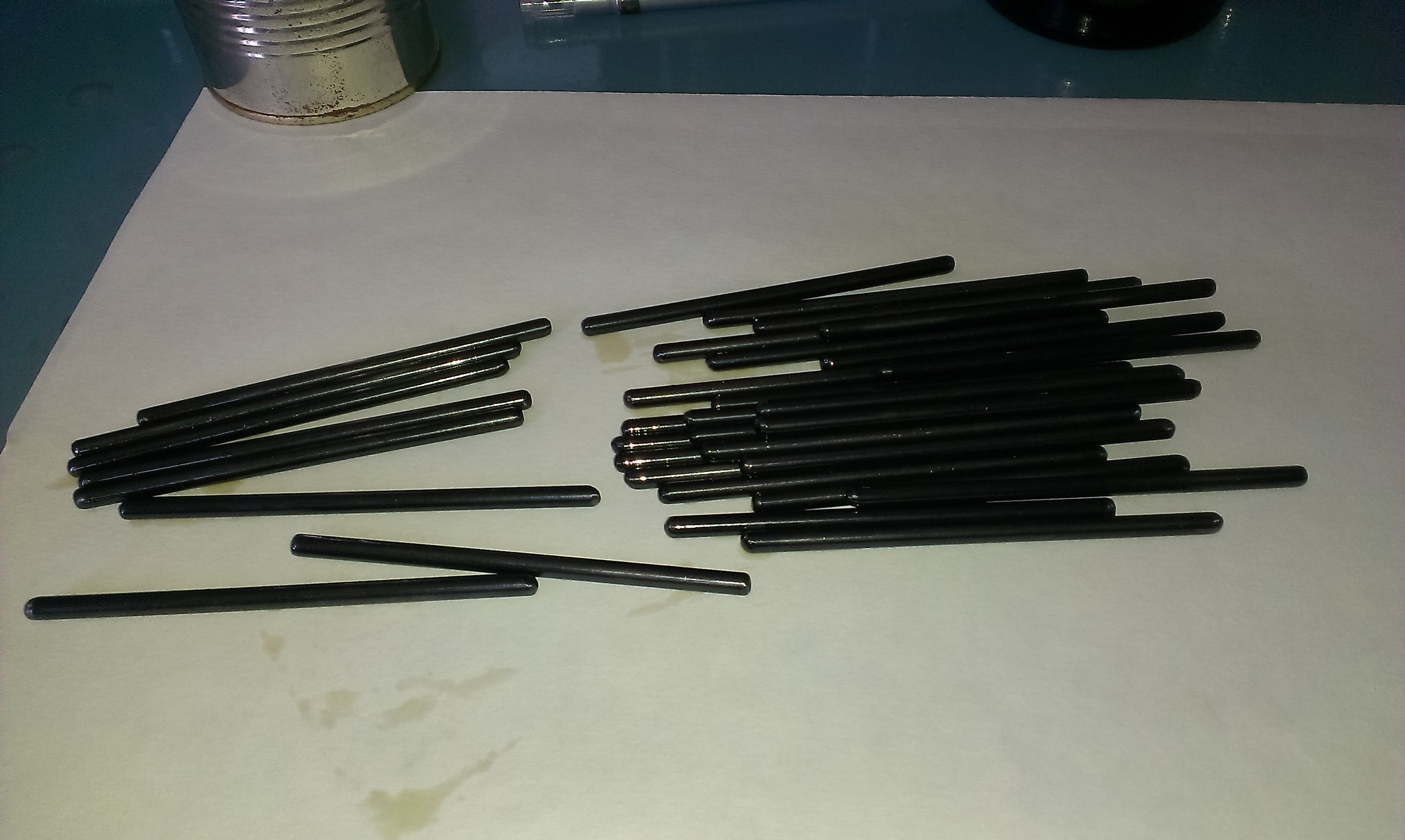 ) som doma čiernil asi pol kila oceľových kolíkov. Kúpeľ pozostával s roztoku hydroxidu draselného a dusitanu draselného (ak bude záujem, dám predpis). Teplota kúpeľa 115-120°C. Proces trval asi 20-30 minút. Počiernilo sa to naozaj krásne, akurát som trochu tŕpol, aby mi nepraskla tá sklenená kádina a ten roztok sa následne nepražral cez 4 poschodia