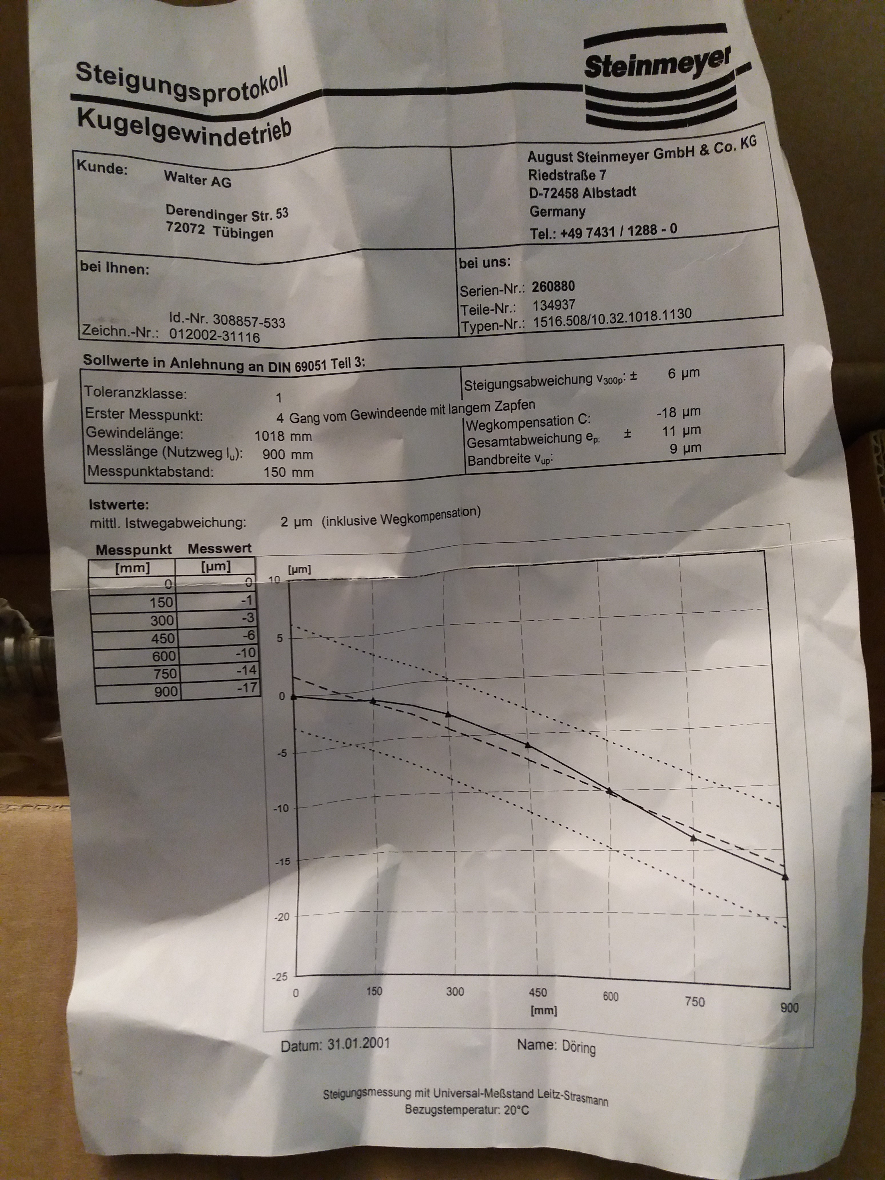 Prodám nový broušený kuličkový šroub s dvojitou předepnutou maticí Steinmeyer