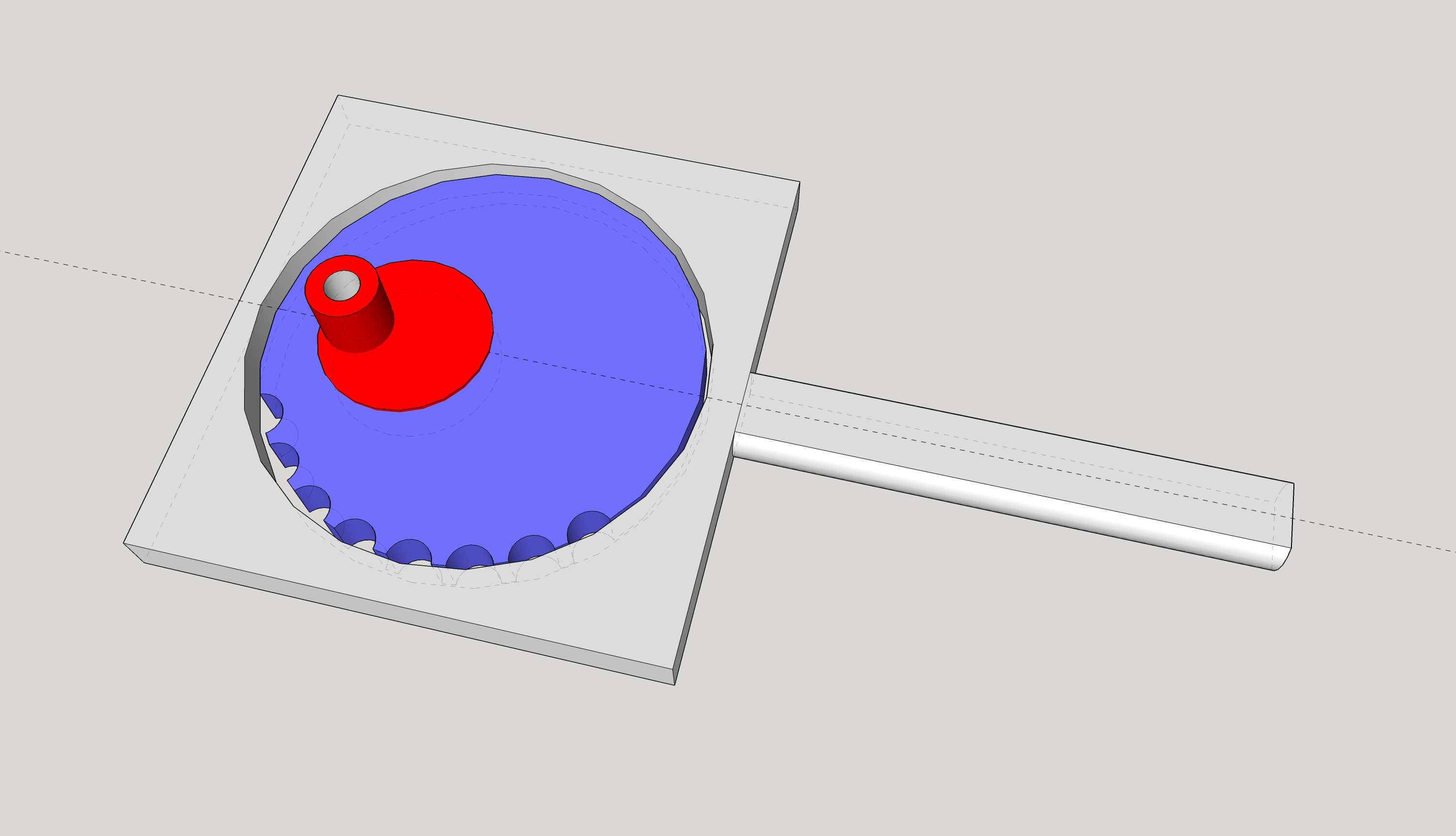 Kedysi sme takto riešili riadenie zdvihu piestovej pumpy. Výrezy na obvode modrého excentra slúžia ako aretácia pri otáčaní, z ojnice do nich zapadal palec na pružine, červený excenter bol poháňaný motorom. Pozriem zajtra v dielni, možno tam ešte jeden kus niekde je v skrini, odfotím.