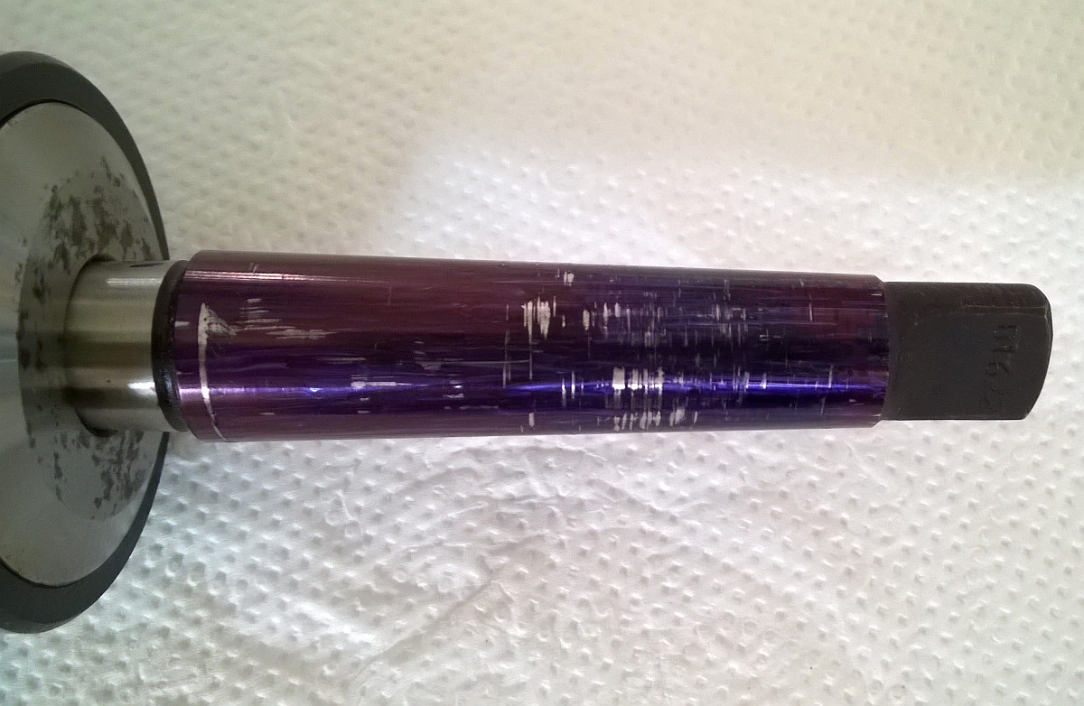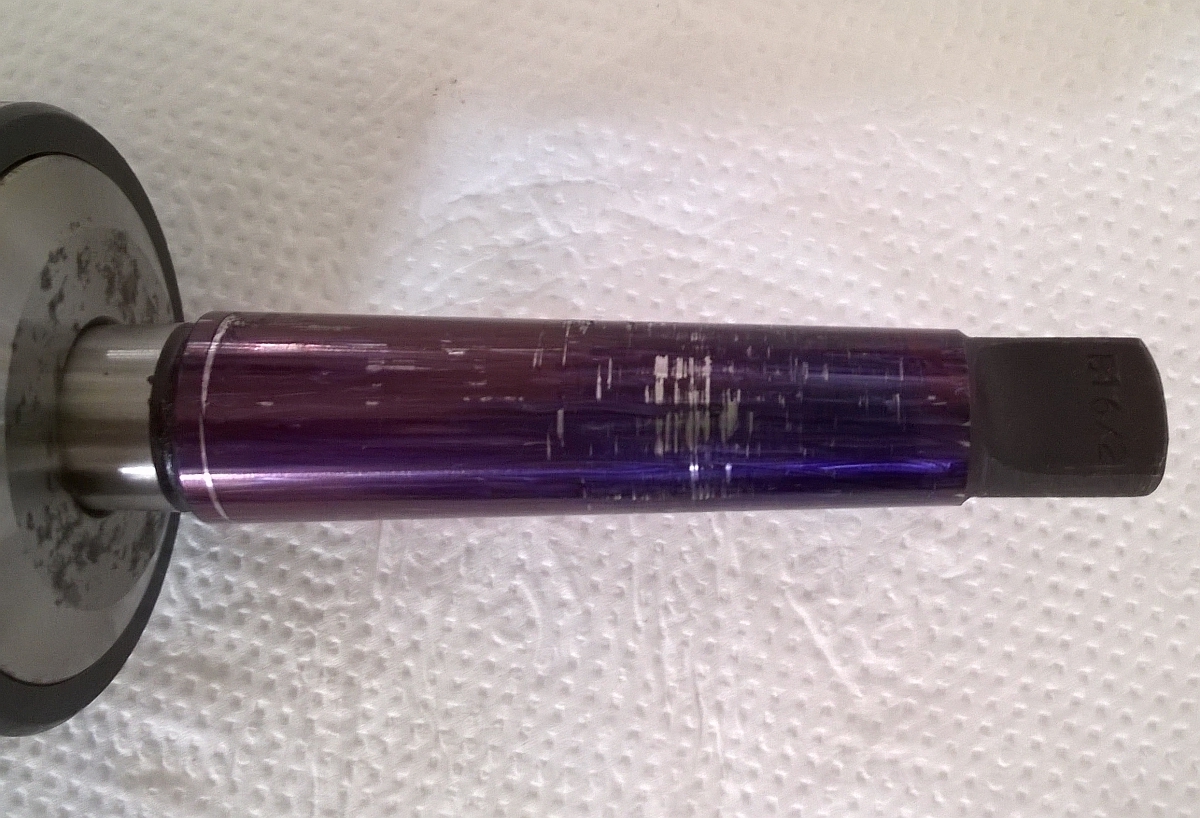 Pořídil jsem starou malou frézku, kde se podle dokumentace ve vřetenu mohly vyskytovat dva typy kuželů. Buď metrický Me18 nebo Morse Mk2. Po lehkém zápasu jsem vytáhl starou olámanou šestibřitou frézu (zřejmě tam byla 10let) průměru 16mm s ne moc pěkným kuželem. Vtahovací šroub je neuriginální. Změřil jsem začátek vřetena posuvkou a naměřil 17,9 mm. Kužel frézy je dlouhý cca 62 mm. Nejužší konec má 14,8 mm a nejširší 17,9 mm, ale stejně nevím, jestli je to správná fréza.
