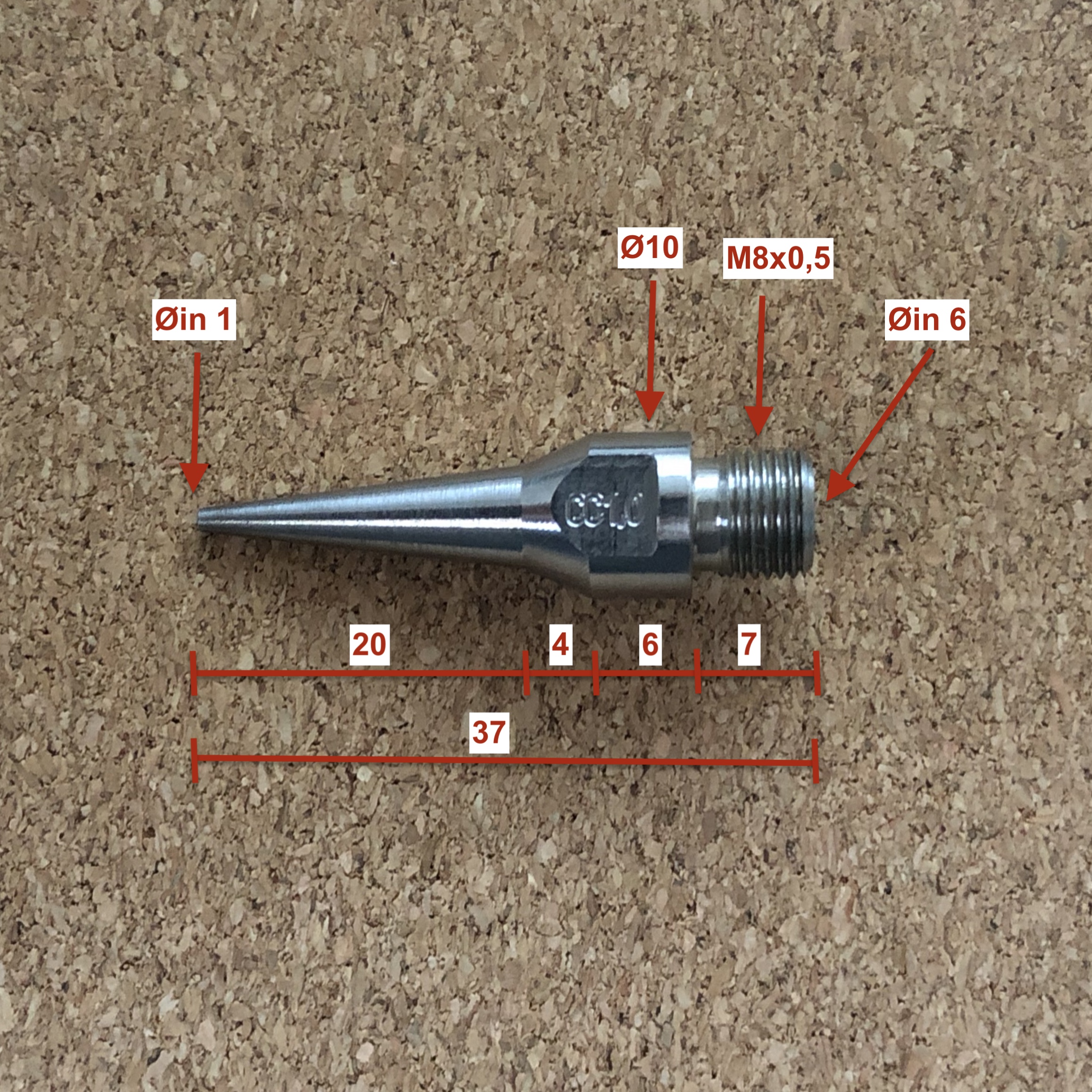 Potřeboval bych vyrobit menší serii takovýchto trysek. Přikládám prozatím alespoň orientační míry. Materiál nebude nijak kritický, jde o trysku na pěnu. Největší oříšek vidím v tom vnitřku, který je kuželový od těch 6 mm na jednom konci po ten 1 mm na konci druhém.