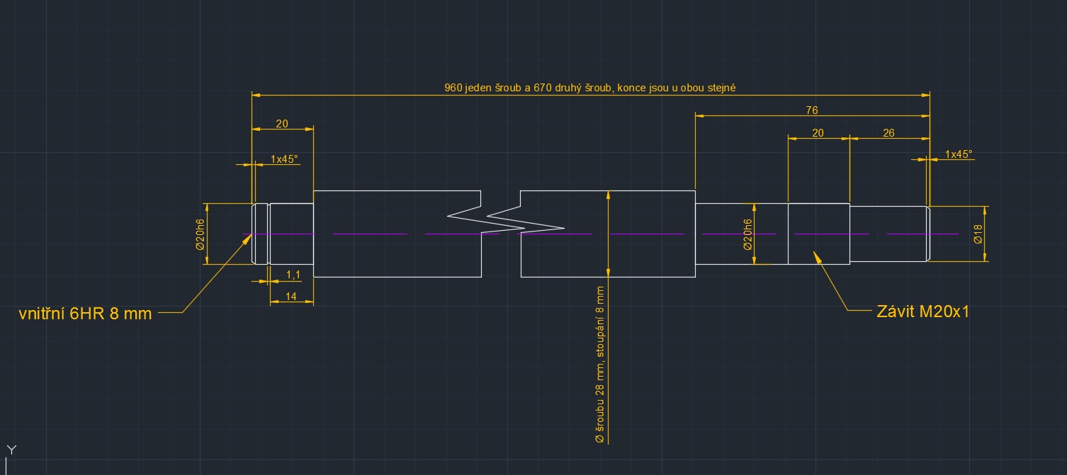 1. celková délka / zdvih ---> 960 mm / 740 mm.