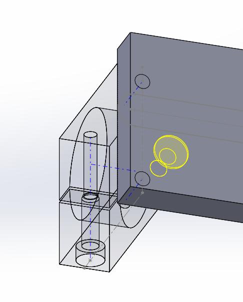 SolidWorks 2013 - sestava, přenesení otvoru z jednoho dílu na druhý.