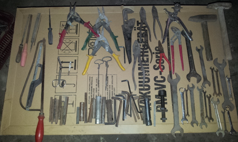 Směska klíčů, imbusy, kleště, děrovače, kladiva vše funkční - 300 Kč