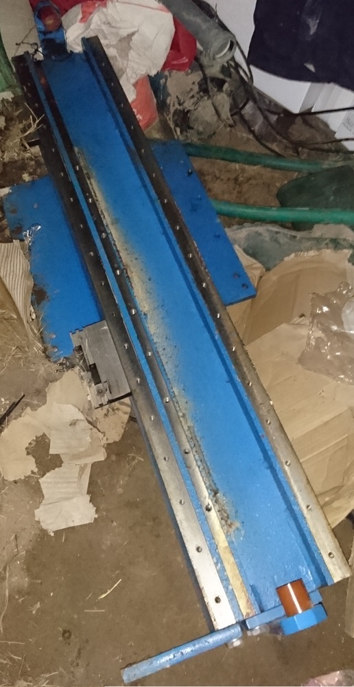 Trám je jekl 25x15cm, délka 460cm s obrobenou pásovinou s "dorážecími" hranami pro kolejnice, dorazy a kanálem pro energo řetěz. Ano, jsem idiot že jsem ty plochy nechal zreznout, vím to. Nicméně se rez neloupe a pro nějaký manipulátor to bude po "přejetí smirkem" dostačující. Na fotkách to vypadá horší než to ve skutečnosti je. Nafotil jsem ještě ten hliníkový kus, na který se přišroubovali vozíky a který jezdil po trámu + "osu Z" která byla přišroubovaná na tom hliníkovém kusu. Délka téhle osy je 107cm. Cenu za vše bych si představoval tak 10 000Kč. Tu Z osu bych si chtěl nechat, ale ten hliník dám k trámu, v případě že se tak rozmyslím, tak bude trám za podstatně lepší cenu. Cena samotného trámu je 3000 kč.