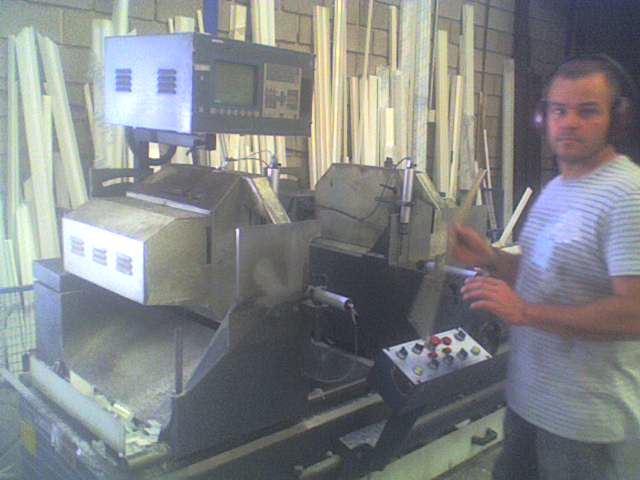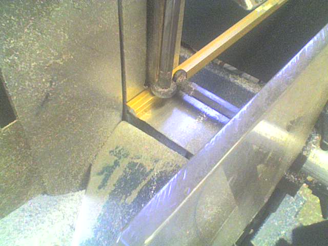 Jelikož jsem si zapoměl posuvku a Pape měl jen metr, nechal jsem 3 metrovou tyč osudu ve víře, že to snad bude aspoň víc a pude to zkrátit když netrefí míru. 3 metrovou tyč mašinka rozfikala za pár sekund v k kvalitě řezu víc jak úžasné přesně systémem jak říká Madbox staršina - drželo před řezem i za řezem vzduchovejma svěrákama nejen z boku ale i shora. Asi na tom opravdu záleží aby se materiál neměl šanci pohnout. Hned se mi v palici začala rodit CNC pila a taky sem to řádně ošpionoval mobilem.