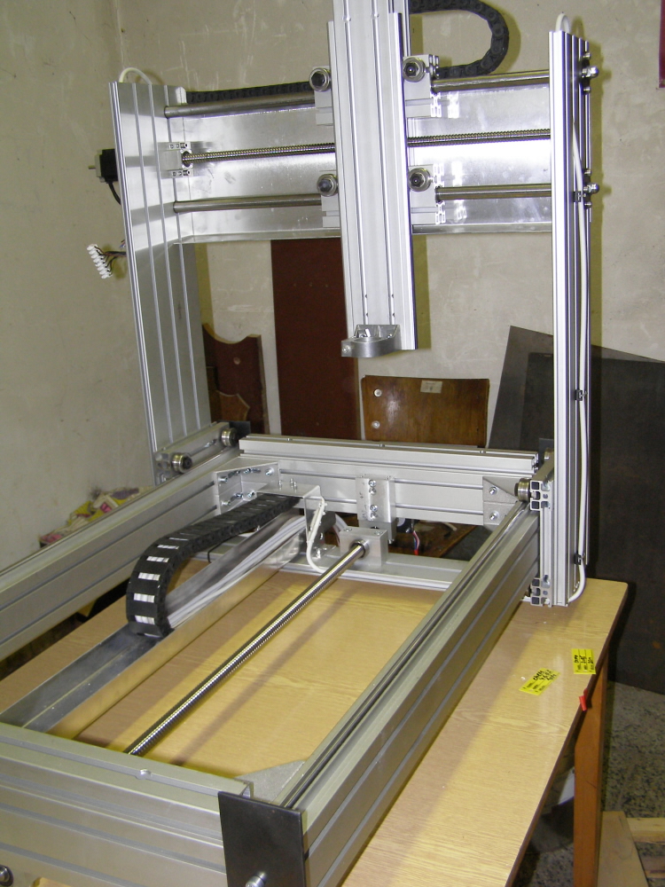 Zdravím všechny, je po prázdninách a mám hotové potřebné díly, tak jsem to sestavil a posílám první fotky. Narazil jsem ale na základní problem - pojmenování os. Objevil jsem u dvou nástrojařských frézek různé pojmenování os.