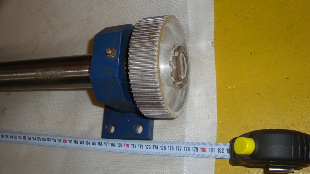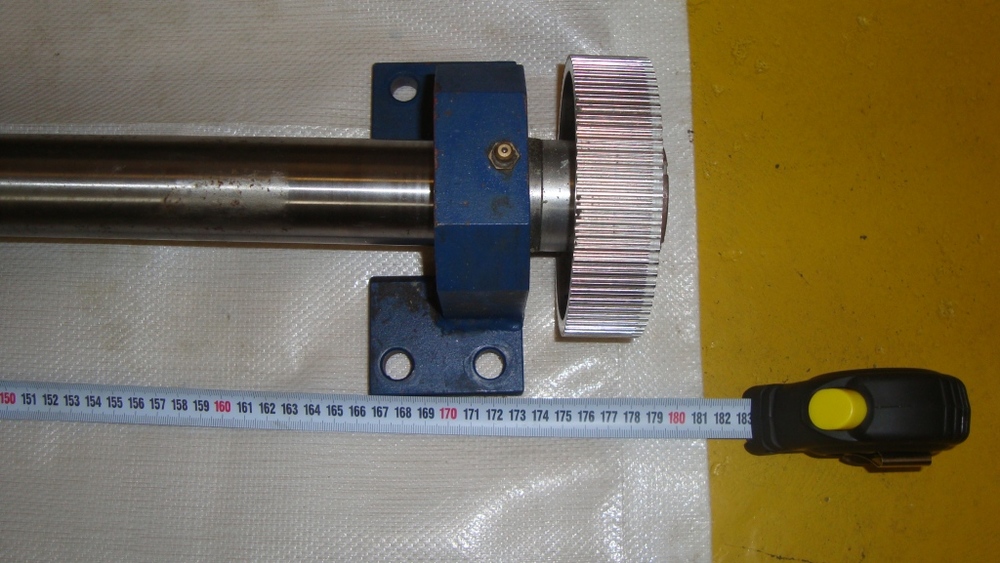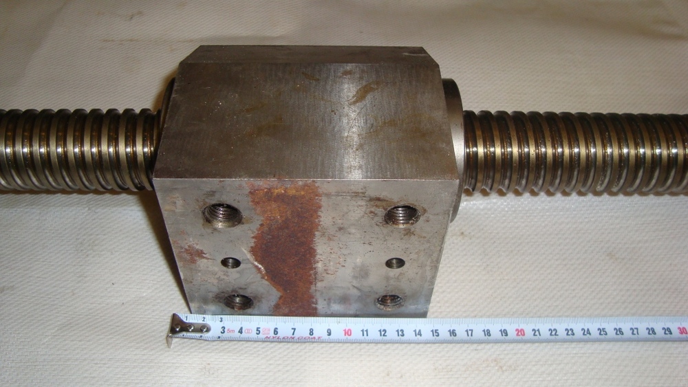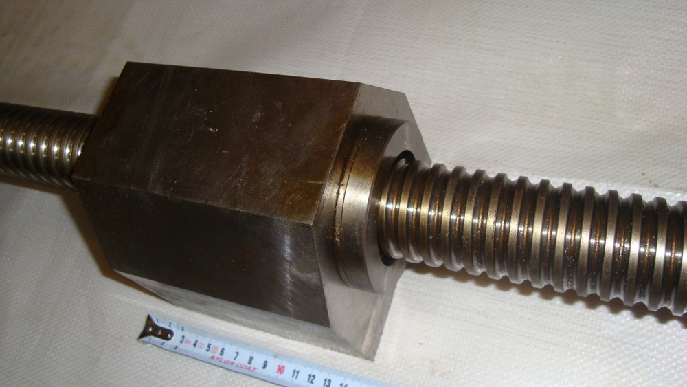 Prodám použitý kuličkový šroub, průměr 50mm, celková délka 1780mm, délka šroubovice 1350mm, délka matky 160mm, stoupání 10mm, s domky, s ložisky, s řemenicí