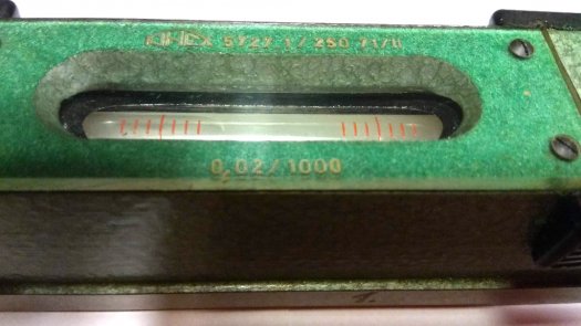 Strojní vodováhy jsou obvykle právě v přesnosti 0,2 mm/m nebo 0,02 mm/m. Na první pohled jsou stejné.