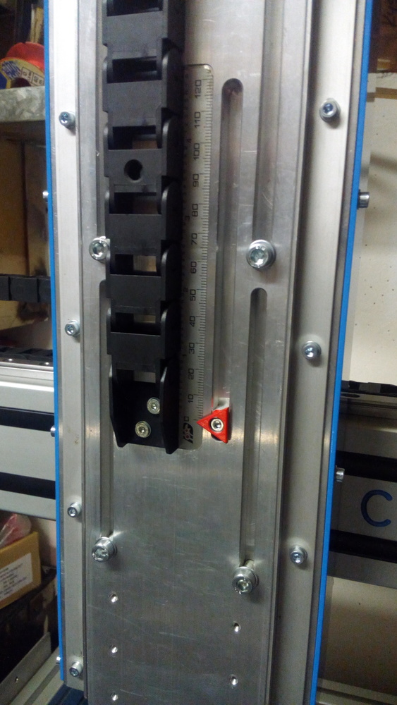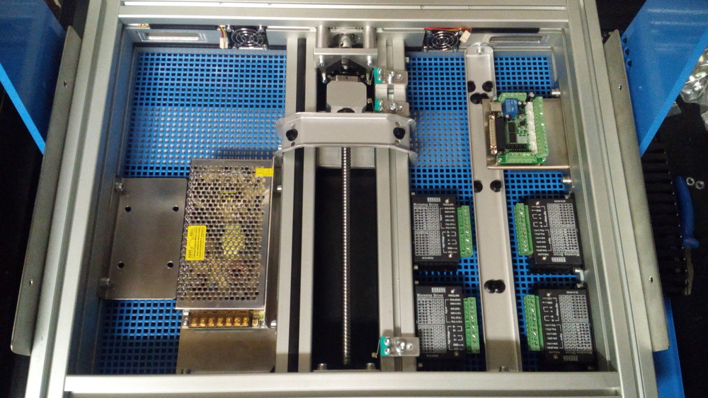 Nejnižší a nejvyšší bod laseru. Na ose Z je ještě ručně posuvná plotna. Boky jsou z 10mm plechu.