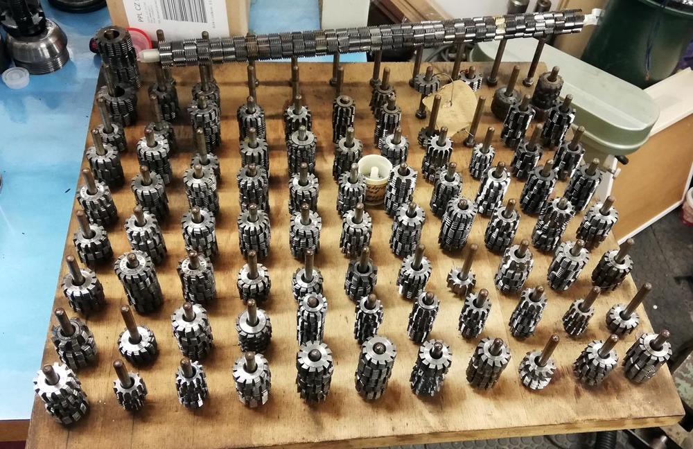 Mnohé sú originá od fy. KOEPFER, ostatné sú dorobené vo fabrike. dokopy okolo 400 kusov. Značenie je podobné ako píše JOVA. Je tam číslo a Z, priemer a uhol. Množstvo druhov, aj nejaké patvary: