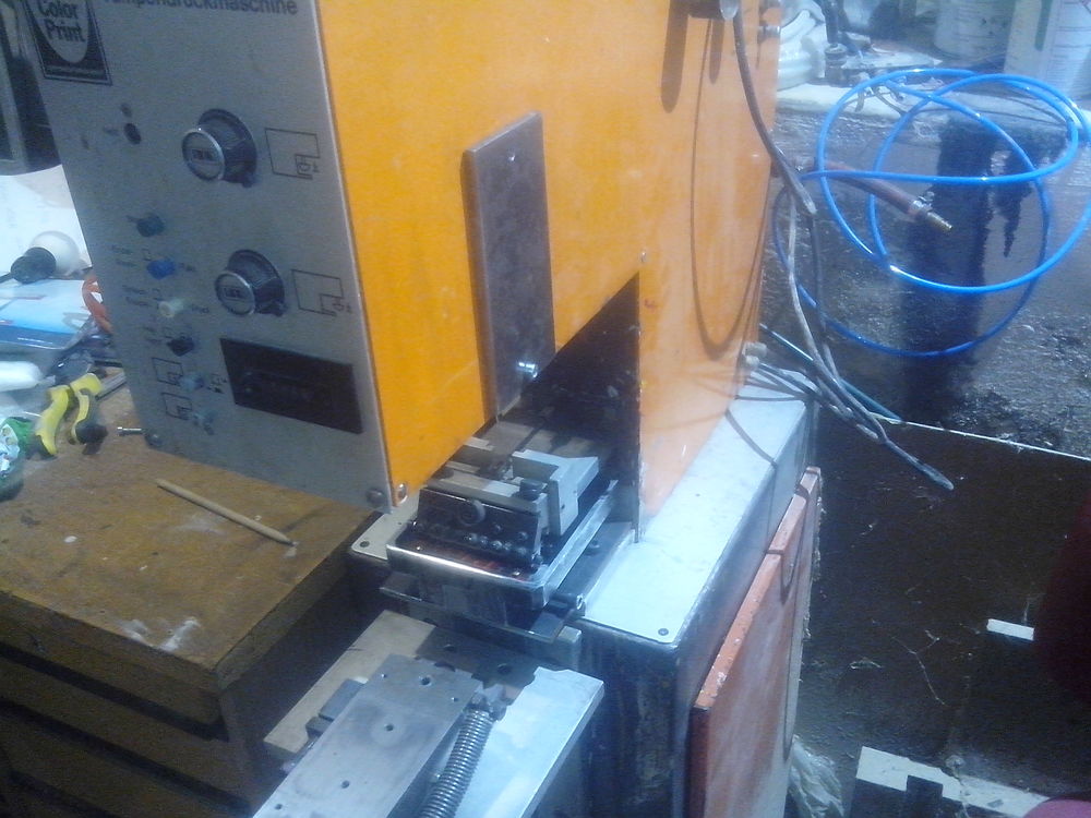 Jako náhradní řešení jsem měl zprovoznění té druhé mašiny - což představovalo dost práce, nebo pořízení jeté mašiny. Bylo to celé pracoviště s potiskem, osvitkou, tampony, barvami a materiálem za velmi solidní cenu - ale musel jsem to vzít celé komplet - a navíc průser - nepasovaly mě do toho klišé (já používám 100x100, ta mašina má 75x100) - což by pro mě znamenalo postupně předělat asi tisícovku klišat ....