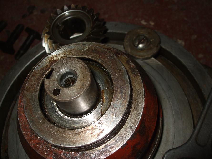 ) Hlavu som zhodil, a bola to taká banalita- na tých kuželíkových ložiskách na náhonovej hriadeli sú z každej strany nalisované krúžky (krytky), Jeden sa vysunúl, a začal drieť o valcovú časť ozubeného kola- na fote je to vidieť. No krúžok som zarazil nas5, a narezal dva M5, a skrutky zaistil cez hlavičky drôtikom.