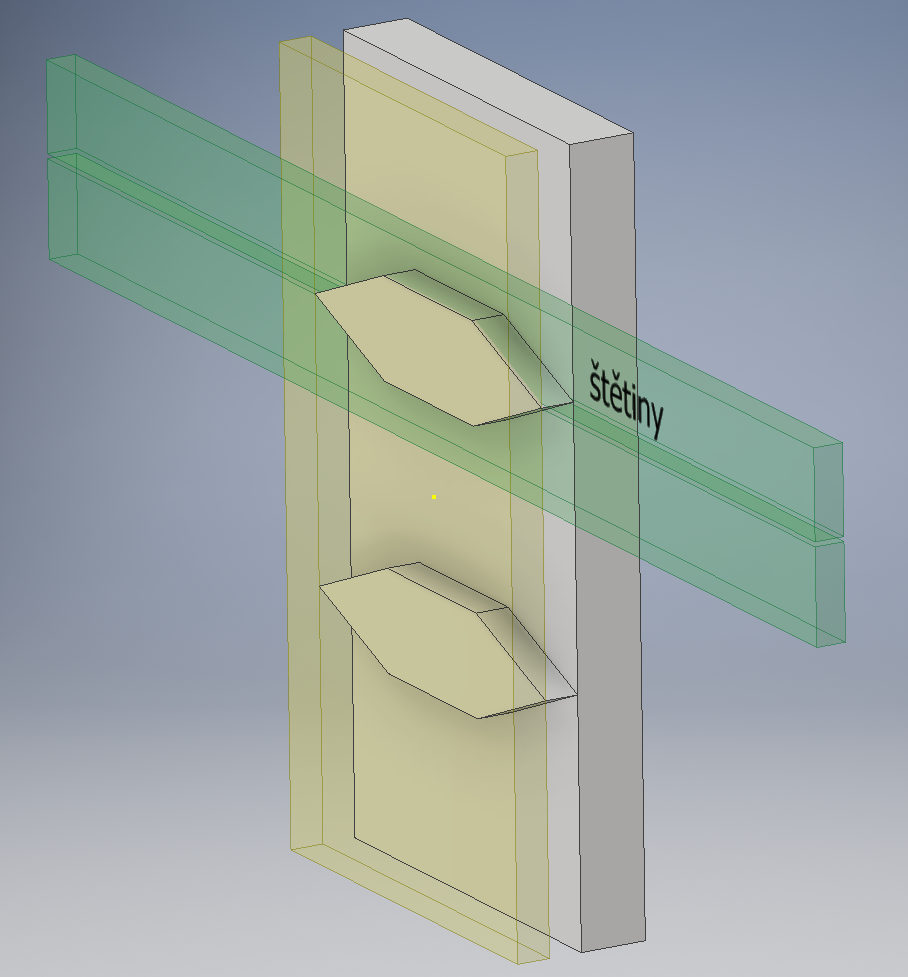 Ty štětiny mě napadly taky a nejspíš je tam nahoru i dolu dám. To řešení co máš na obrázku je sice jednoduché, ale přenášíš hlavu pomocí dvou poměrně tenkých placek, kde bych trochu váhal o tuhosti v ose Z. I když věřím že dělka těch placek mezi těmi štětinami je nanejvýš pár milimetrů.