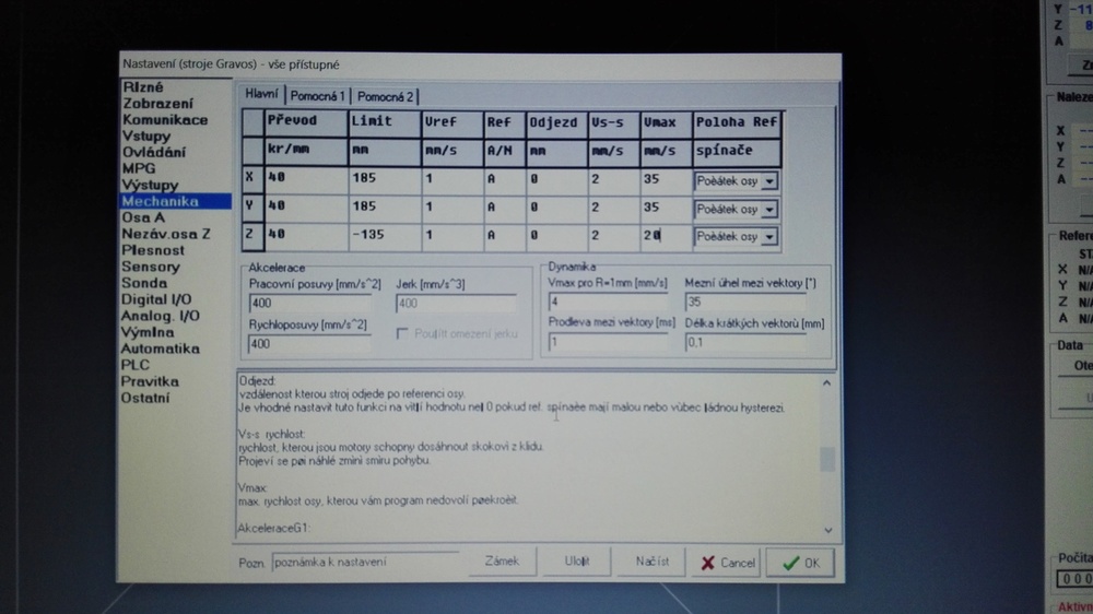Sundej akceleraci na 200 nebo i míň a uvidíš ....cca 400 mám na jediný mašině a ta je na precizních lineárech a má kvalitní serva, na mašinách s krokáčema (a to mám kvalitní 5 a 3 fázový) mám okolo 200. Dokud jsem měl na mašině starý dvou fázový, tak byla hodnota akcelerace okolo 120 a rychloposuv cca 400 maximum co se dalo spolehlivě provozovat. :wink: