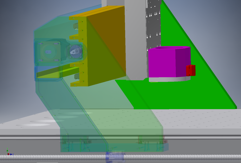 dotaz zní: pokud zvolím pohled z boku na osu Y, neměl by střed vřetena správně procházet osou vozíků na X, z důvodu optimálního rozložení sil ?