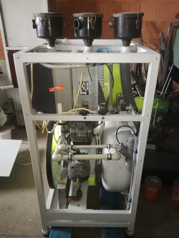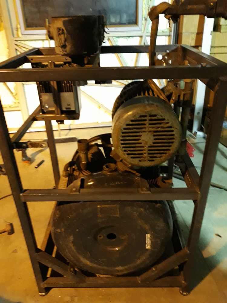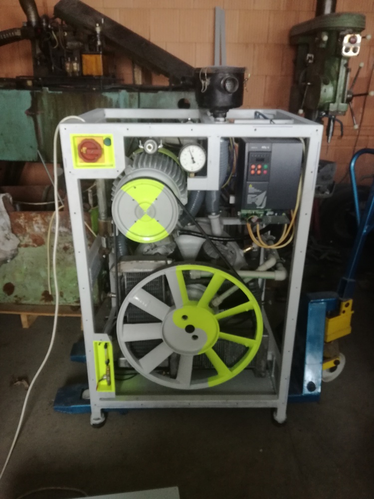 Kompresor stál původně na 1000l vzdušníku a měl k sobě 15kW motor.Je to dvoustupňový 4 válec. Maximální tlak 16 Atm. Chtěl jsem něco co mi vejde do technické místnosti, tak jsem předělal do "bedny".