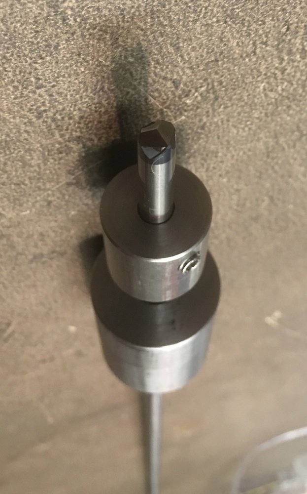 závaží na tyčce s ryskou výšky, TK vybroušený hrot, zvolil jsem 3x 120st pro lepší nalezení hrany/velikosti důlku.